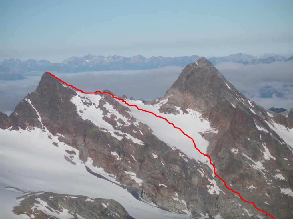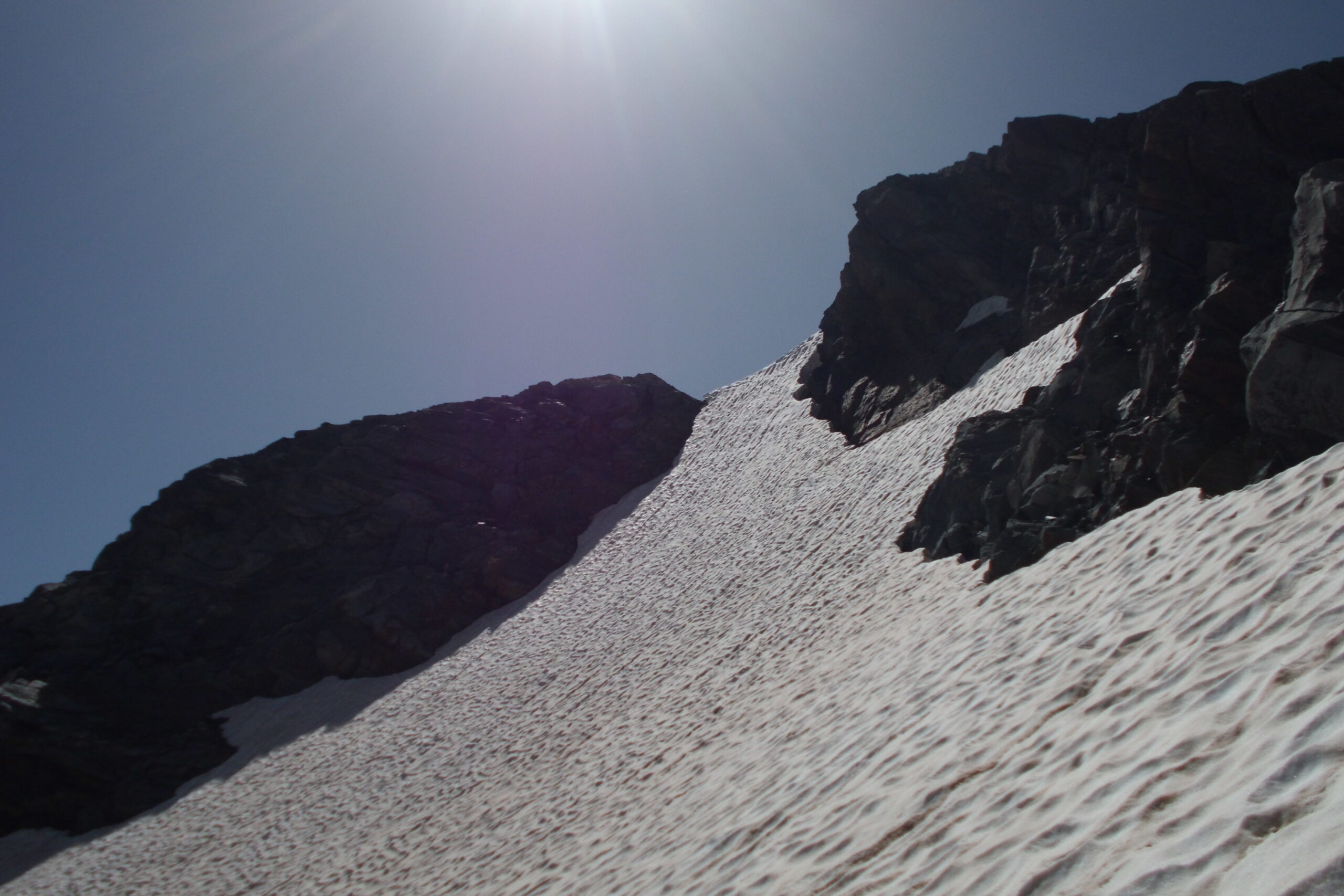 | sierrachr | Altra prospettiva del breve pendio a 45°. Se le condizioni neve lo permettono, a mio avviso piu' facile rispetto ad affrontare lo spuntone roccioso direttamente | sierrachr | L'evidente scivolo nevoso a 45° ben visibile prima di giungere al colle di Assaly | sierrachr | Eccola qua! | sierrachr | Percorso personale di accesso al ghiacciaio, piu' o meno, comunque seguire gli ometti! | sierrachr | Foto scattata qualche anno fa dalla cima della Becca Bianca, ho disegnato il percorso di salita che sale sulla rampa nevosa di 45° | sierrachr | | sierrachr | Ometto di vetta, vicinissimo all'uscita in cresta! Dall'uscita si gira a dx e in pochi facili passi e' fatta! | sierrachr | Le roccette bianche sul tratto chiave, le ho prese come riferimento per la direzione d'inizio salita. La natura del terreno non invita di certo! | sierrachr | I 3139m. del Mont Dela' | sierrachr | Diversa prospettiva del mio percorso | sierrachr | Sono salito stando alto ( lato sinistro, piu' o meno sotto il promontorio roccioso ) | sierrachr | Roccette bianche, qui si vedono meglio | sierrachr | Altra prospettiva roccette bianche | sierrachr | Per giungere sotto la parete terminale ( 200 metri chiave ), si passa sotto questa bastionata orizzontale rocciosa e la si aggira sulla destra. Nella foto in direzione di quel piccolo nevaio | sierrachr | Da qui in poi finisce il sentiero, nessuna traccia, zero ometti