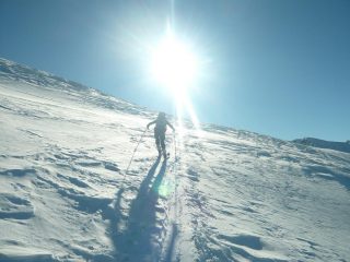 Partiti alle 9.00 con meno 11°, clima secco, perfetto per la salita. In cima alle 11.40. Al sole, meno 10°. Neve continua dall'auto. Non credo…