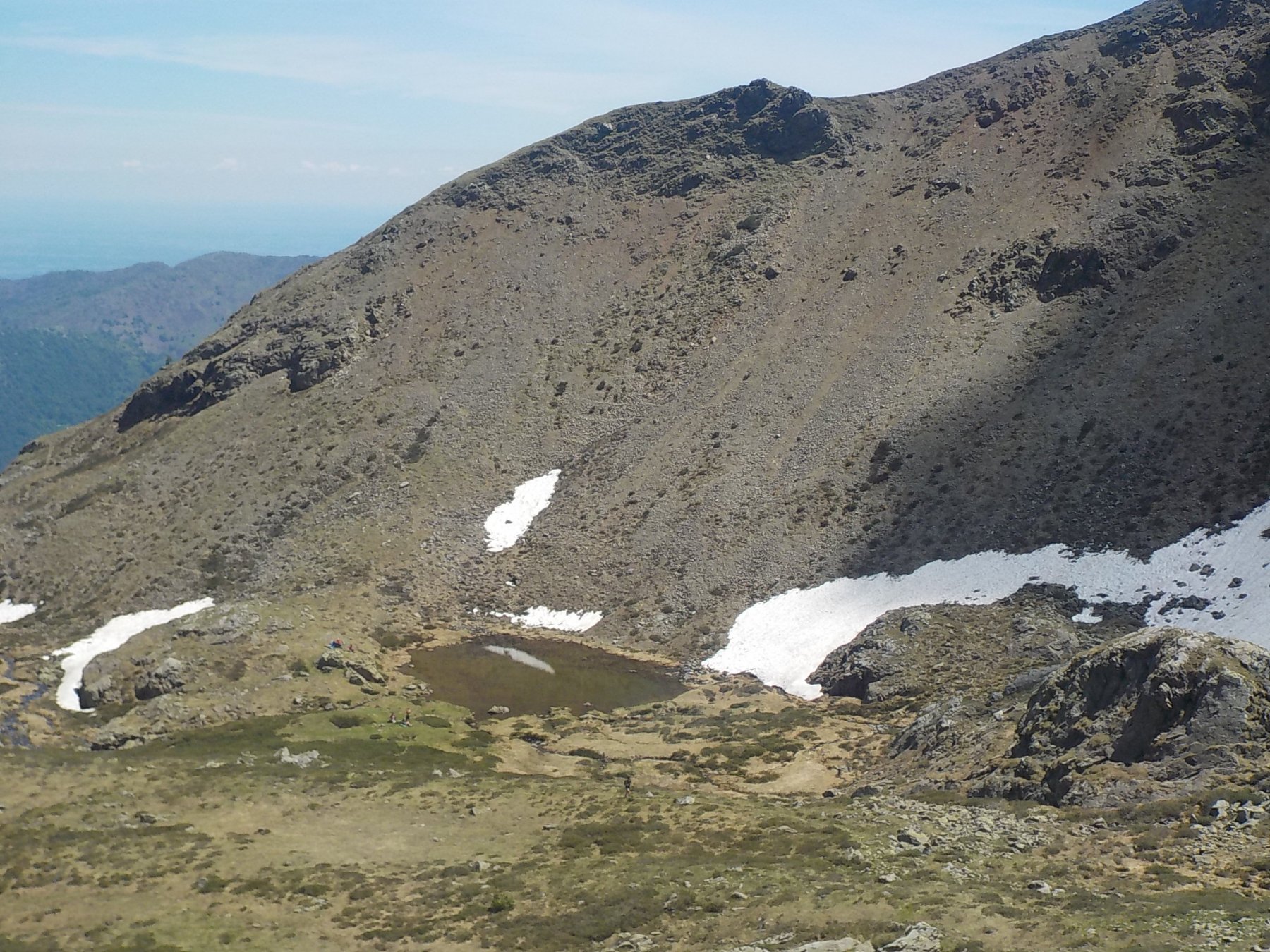 il bel ripiano a 2800 metri: in fondo, un po' spostata a sinistra, la nostra meta