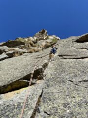 Via molto bella, con tiri interessanti e la caratteristica roccia della bastionata del Serrù: tacche a volontà. L'ottimo lavoro di pulizia fatto sulla via rende la…