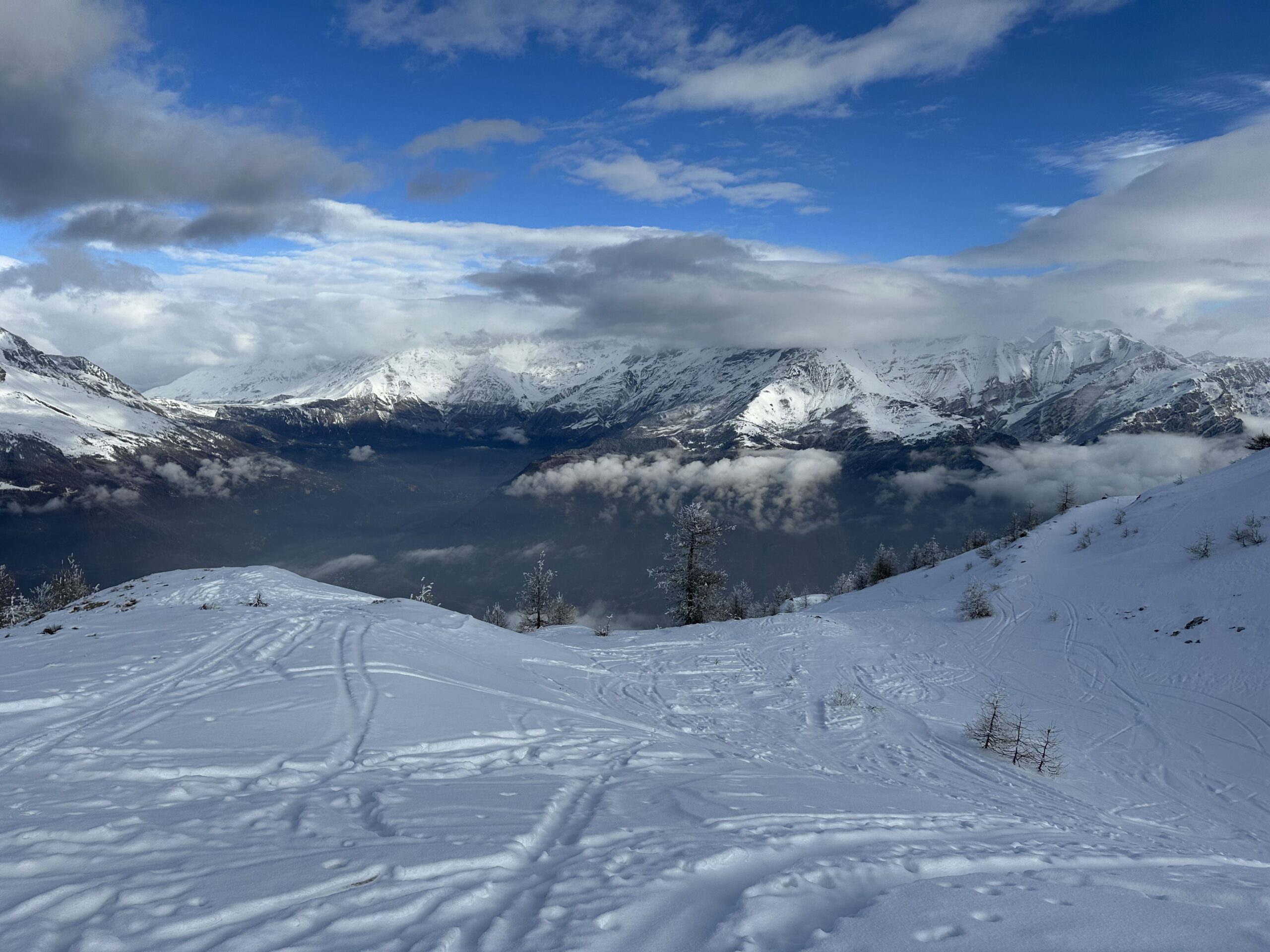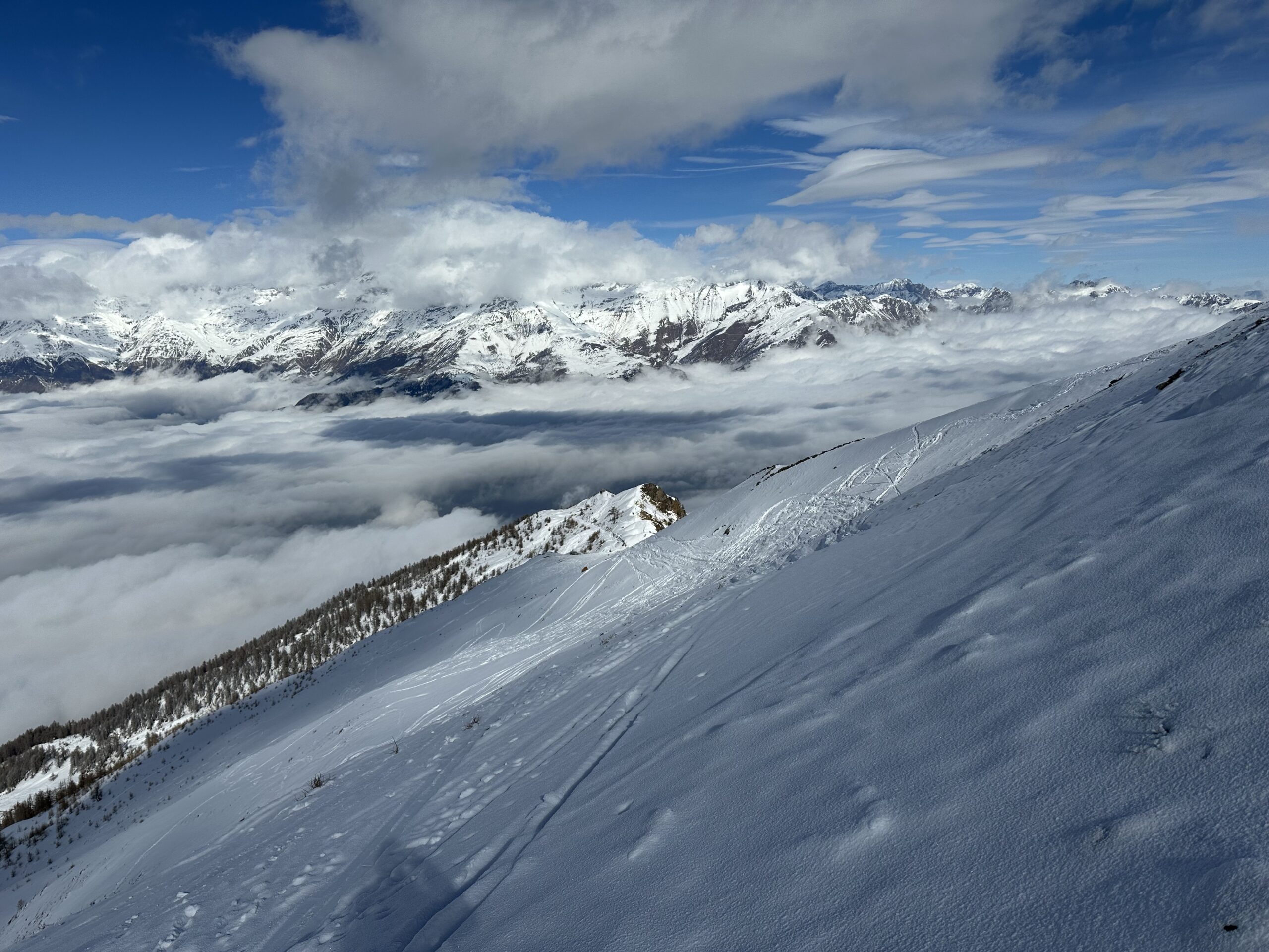 | smarchio | La punta da sotto Prato in Fiera | smarchio | Sempre da lì, verso il Moncenisio | smarchio | Dalla vetta verso il Moncenisio con le nuvole che stanno per coprire Susa | smarchio | Dalla vetta verso la Ciantiplagna e l'alta valle | smarchio | Il primo pendio sotto la vetta OCCHIO AI SASSI, ma si riescono ancora ad evitare | smarchio | scendendo sotto i paravalanghe.... occorre cercare.... | smarchio | ... ma qualcosa si trova ancora