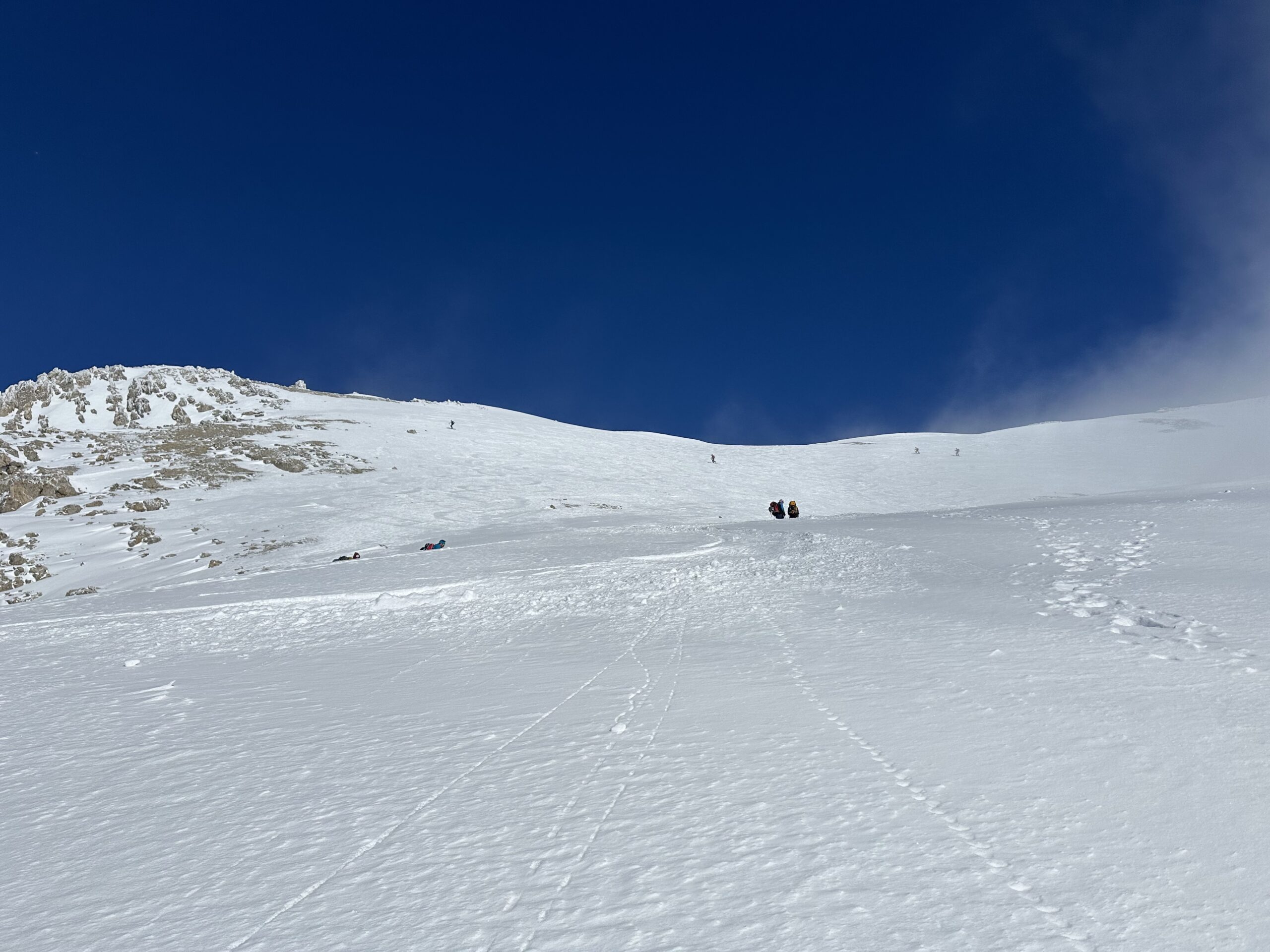 | smarchio | Dalla vetta guardando a sud | smarchio | e verso nord | smarchio | Primo tratto di discesa incontrando diversi salitori | smarchio | Il tratto dei bei pendii a sud-ovest | smarchio | verso il basso si vedeva il folto gruppo di ciaspolatori diretto al Colle