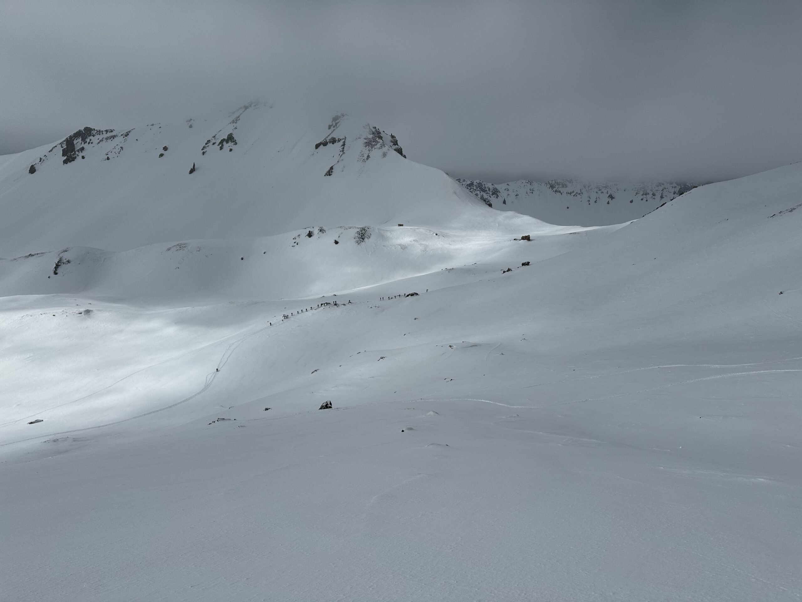 | smarchio | e verso nord | smarchio | Dalla vetta guardando a sud | smarchio | verso il basso si vedeva il folto gruppo di ciaspolatori diretto al Colle | smarchio | All'altezza del Col de Meandes guardando indietro la discesa. Io sono calato dal canalino e nella gorgia | smarchio | In vetta alla cappella (chiusa per restauro) preparativi per la discesa | smarchio | Le prime curve sulle placche ventate ma non impossibili | smarchio | Il canalino a q 2800 | smarchio | Sempre dal canalino 2 ciaspolatori (CHE SALUTO) sulla traccia di salita | smarchio | Salendo, quasi sotto la Parete dei Militi | smarchio | All'altezza del Col de Meandes guardando la salita appena percorsa | smarchio | All'altezza del Col de Meandes - Le Grand Serù | smarchio | All'altezza del Col de Meandes - verso sud-ovest | smarchio | Appena passato il ponticello a q. 2200 | smarchio | scendendo sotto i paravalanghe.... occorre cercare.... | smarchio | Il primo pendio sotto la vetta OCCHIO AI SASSI, ma si riescono ancora ad evitare
