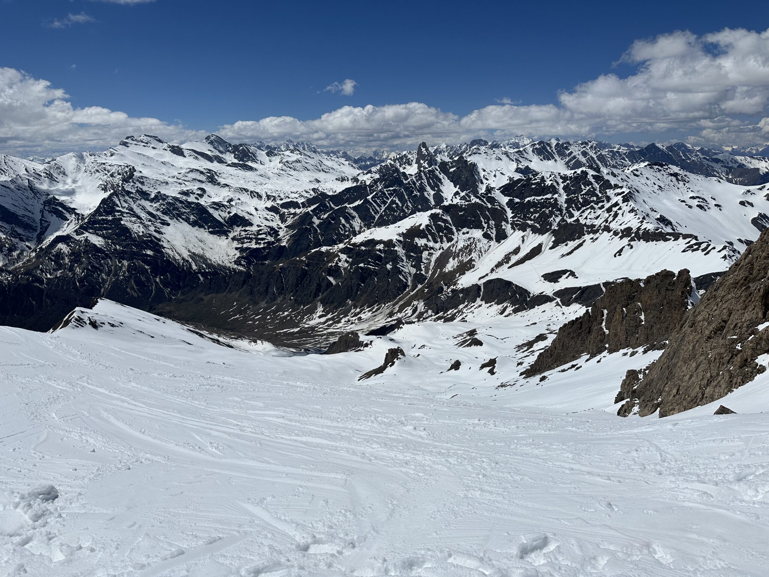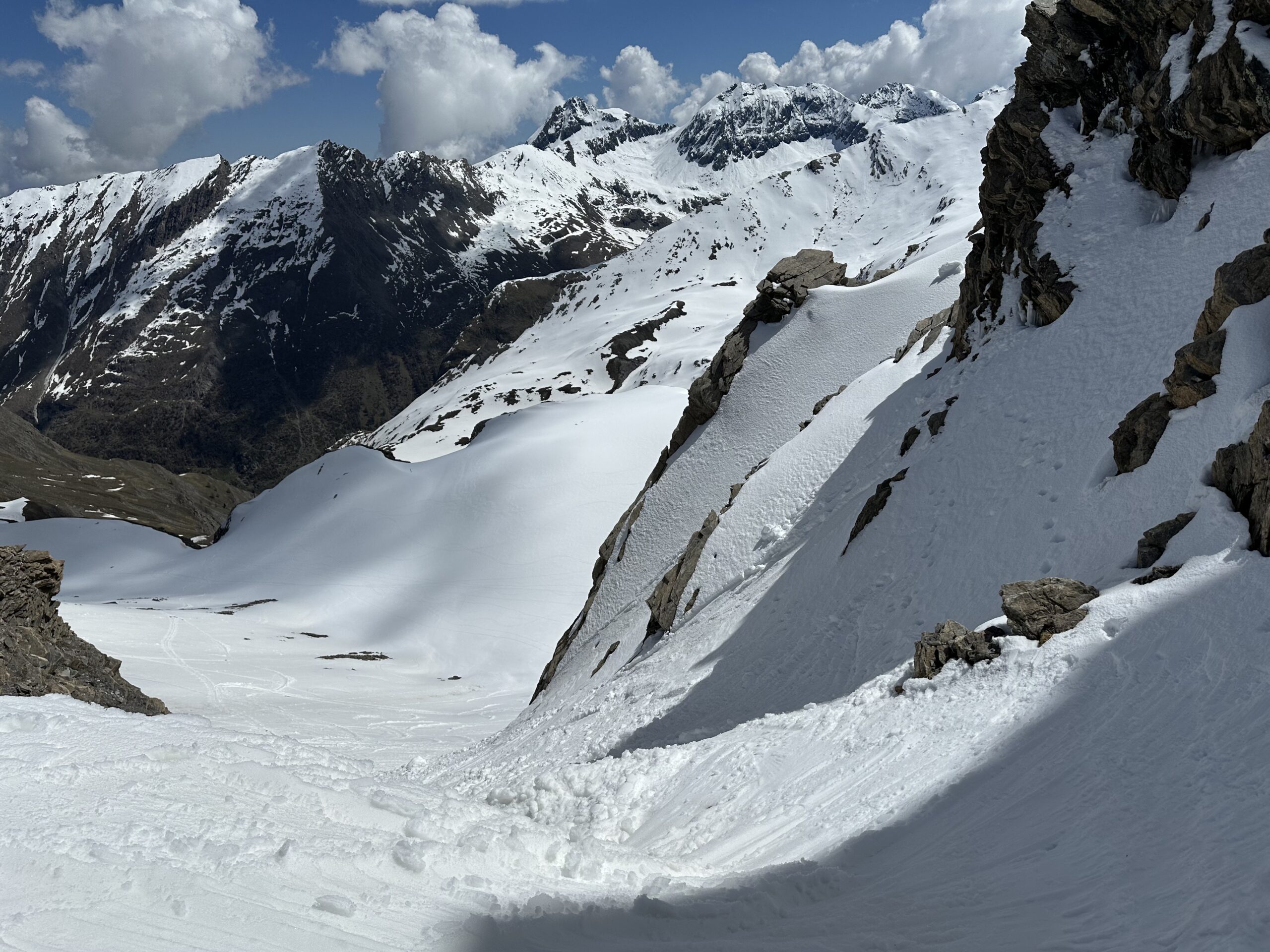 | smarchio | All'imbocco del canale - panorama sul Malamot e Lago Bianco | smarchio | nel canale | smarchio | in vetta | smarchio | canale appena disceso