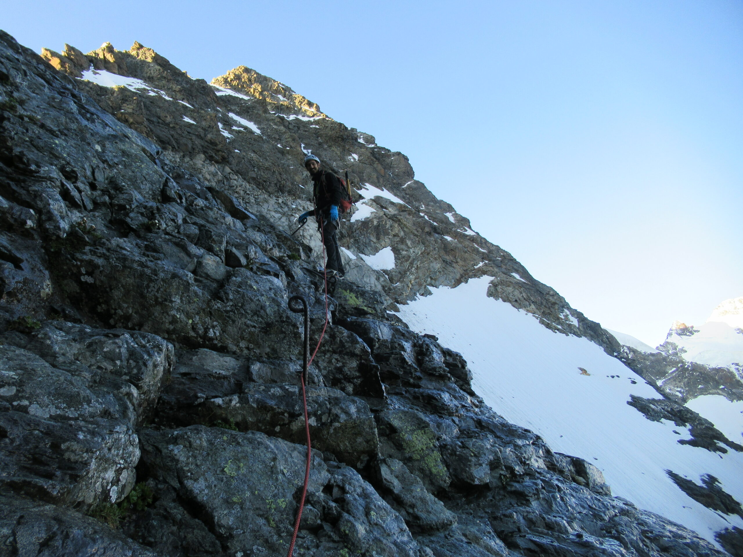 | smarchio | Un tratto di cresta dopo il Pizzo Bianco | smarchio | Uno sguardo sul vallone glaciale che ci condurrà alla parte su sentiero per Diavolezza | smarchio | Ultima cresta nevosa | smarchio | Sulla cresta rocciosa verso il Piz Palù | smarchio | La discesa è per cresta in parte rocciosa in parte su neve fino alla forcella che permette di calare sul nevato che domina il rifugio Marco e Rosa | smarchio | 10 metri a sinistra c'è la vetta: Piz Bernina | smarchio | Ultima impennata prima della vetta | smarchio | All'attacco della Biancograt (sopra al casco di Giacomo si vede l'isolotto roccioso che alcune cordate hanno seguito per cresta; noi alla sua base) | smarchio | Inizia il tratto di arrampicata | smarchio | Tratto attrezzato per il primo colle Fuorcla Prievlusa | smarchio | pic nic sulla terminale dopo aver raggiunto la vetta | smarchio | In vista del ref. du Glacier Blanc | smarchio | Alla base della parete del Dom | smarchio | Con l'alba che fa capolino | smarchio |