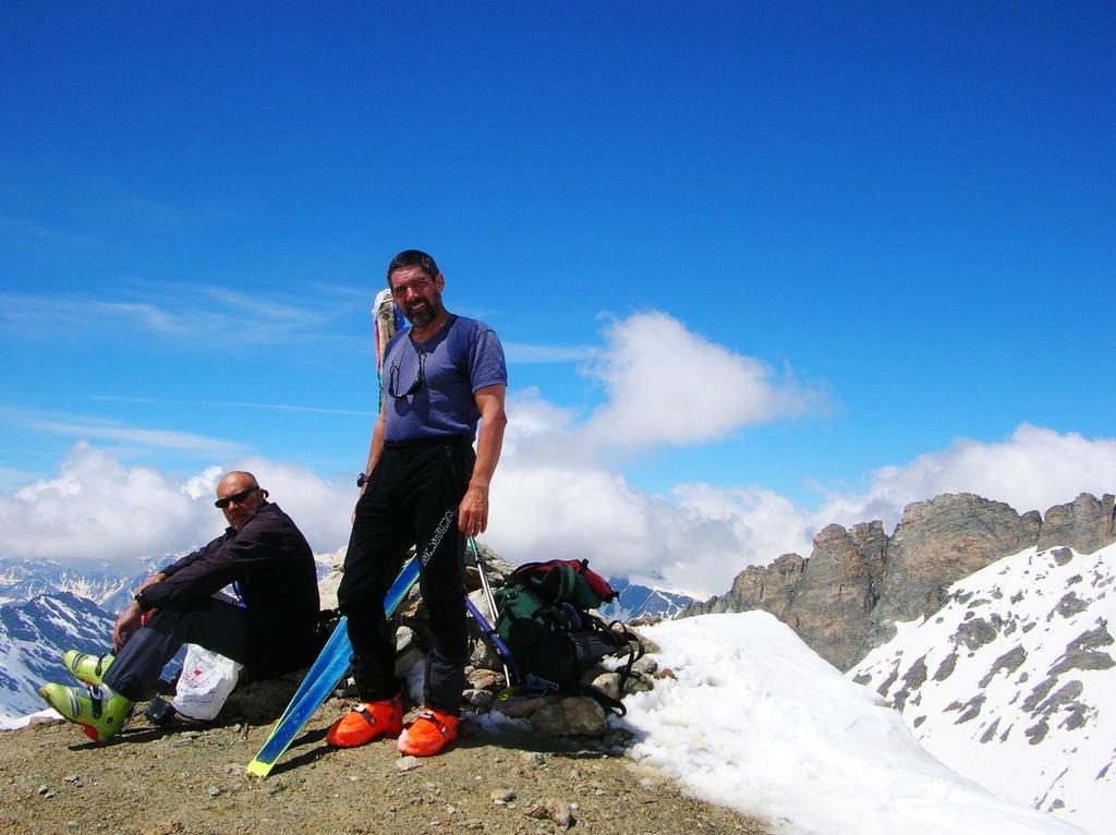 | smarchio | Finita la prima rampa (2500 m ca.) in prossimità del pianoro | smarchio | In prossimità del ref Des Evettes - vista della meta | smarchio | Arrancando sotto il Passo Tonini | smarchio | In prossimità della cresta finale | smarchio | Foto di vetta | smarchio | Foto di vetta 2 | smarchio | Inizia la discesa | smarchio | Divertente no? | smarchio | Finalmente con gli sci | smarchio | Ambiente spettacolare | smarchio | Lingue di neve finali | smarchio | Vista dal posteggio di Ecot della parte bassa del percorso