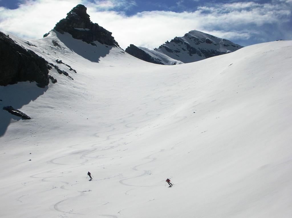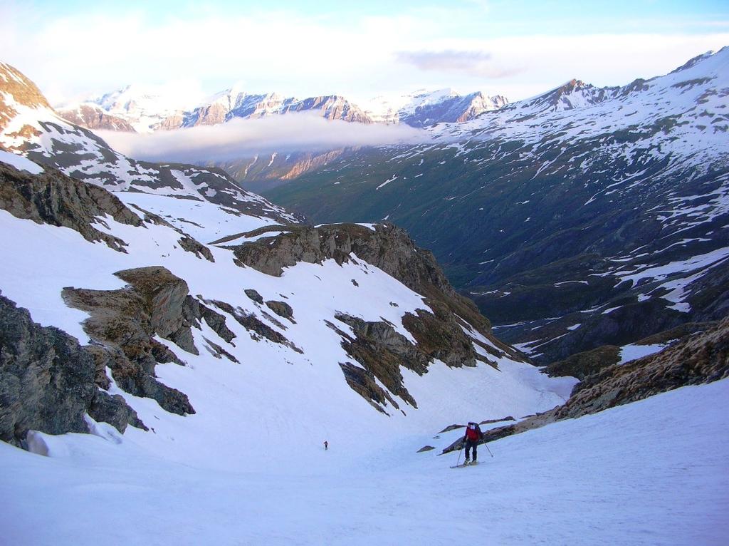 | smarchio | ... eccola finalmente!! | smarchio | panoramica della vetta e della cresta finale (finale sta per fine dei 2100 m di dislivello!!) | smarchio | per raggiungere la cresta... | smarchio | che facilmente conduce in vetta | smarchio | Comunque la sciata è galattica | smarchio | abbeverata in dicesa... | smarchio | .. con vista su quello che rimane del glacier Plates des Agneaux | smarchio | Comunque l'ambiente è splendido | smarchio | Poco sopra le Grange Forciaz l'innevamento si fa continuo | smarchio | Calzati i ramponi si rimonta la parete Nord | smarchio | Nella parte alta la pendeza si fa significativa... | smarchio | ... come si intuisce dalla vista di lato | smarchio | ma finalmente si giunge al colle e manca poco alla vetta | smarchio | Punta sciistica. Si vede la vetta (3607 m) e la cresta per raggiungerla, ma non il gendarme da scavalcare | smarchio | In rosso la via di salita e in blu quella di discesa