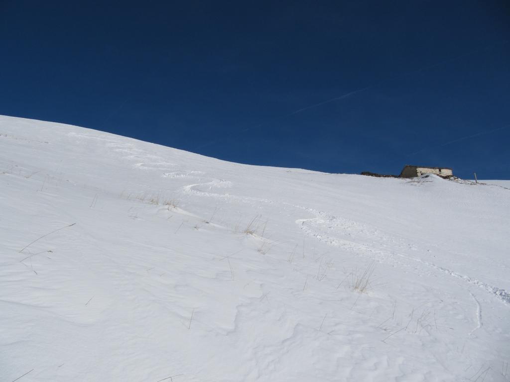 | smarchio | Prati del Vallone (dove è situato il Talarico) e pendii iniziali | smarchio | vista della via di discesa (dal Colle della Lausa) - è il pendio in ombra in centro alla foto | smarchio | Il canalino di salita con il collettino nevoso al centro della foro (è quello basso) | smarchio | Il traversino delicato (ho messo i pallini rossi sotto la traccia che ho lasciato) | smarchio | vista della TESTA DELL'UBAC dal Colle Della Lausa | smarchio | Mentre scendevo (su neve fantastica) uno sguardo al Bivacco ed al Colle della Lausa