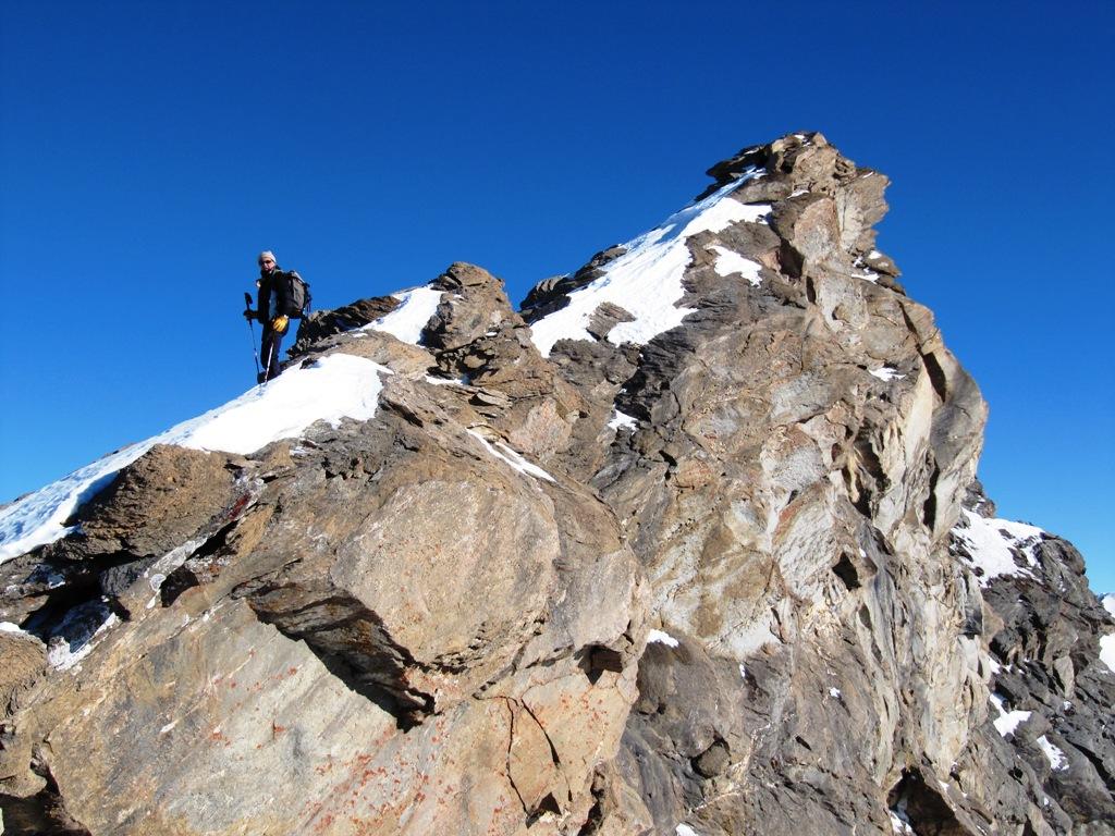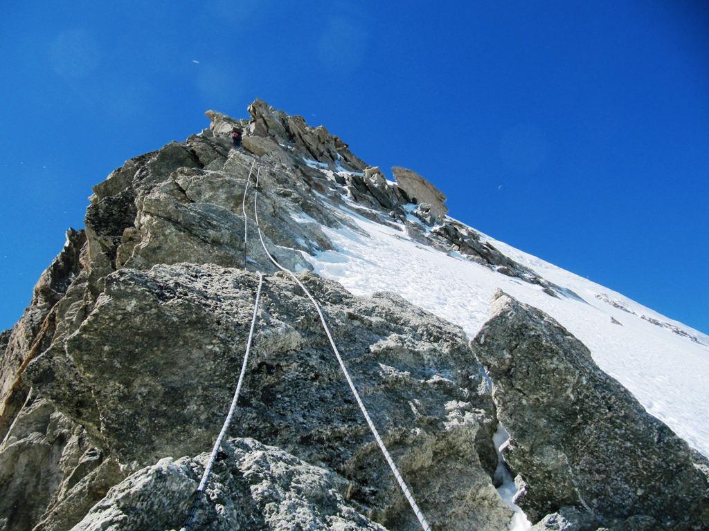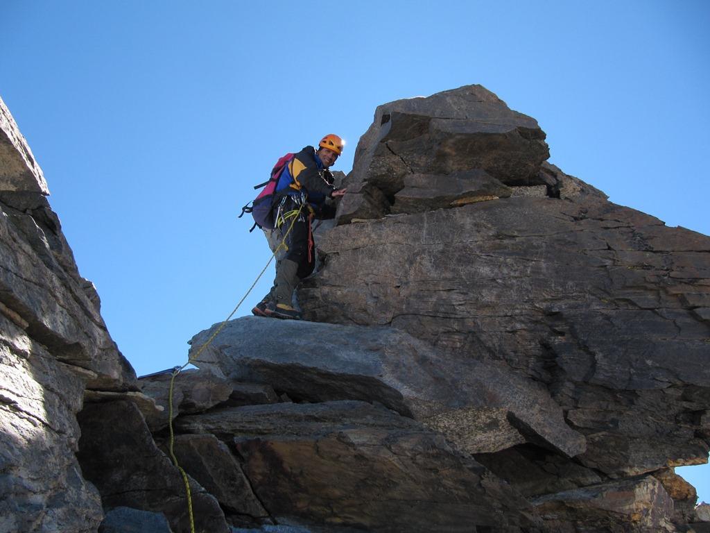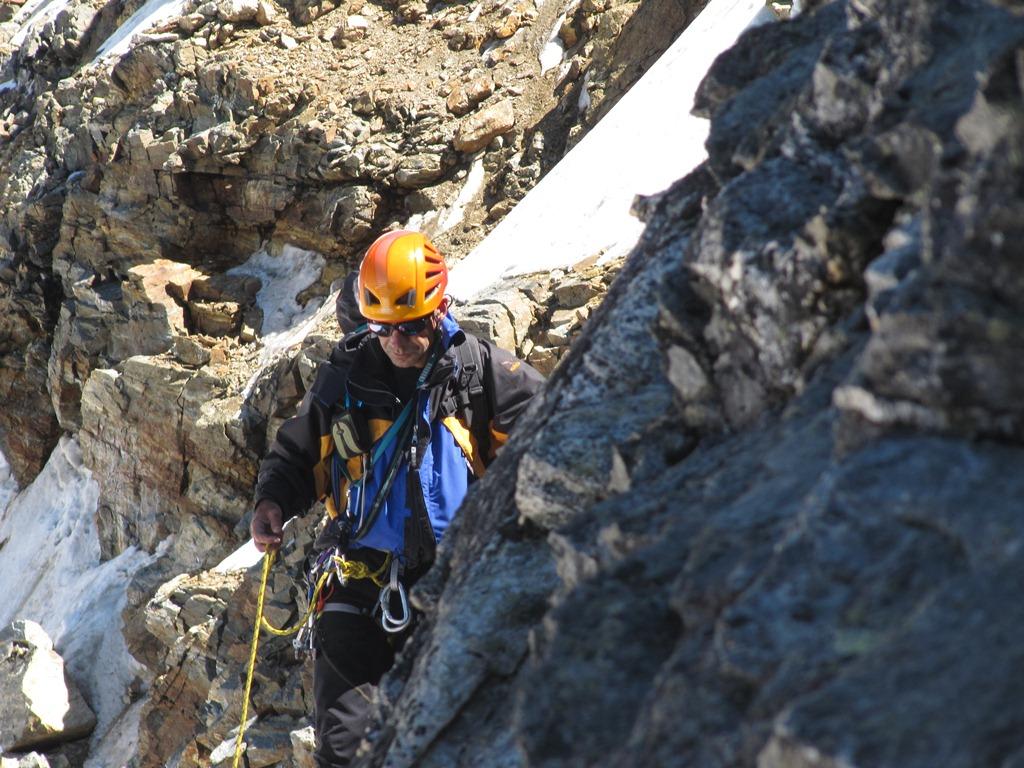 | smarchio | momenti di relax al rifugio prima della gita | smarchio | sotto la Wellenkuppe - momnetodi pausa | smarchio | i canaponi del Gran Gendarme aiutano notevolmente; il passaggio tecnicamente più difficile (senza i canaponi) è nell'ultimo tratto (si lavora molto di braccia) | smarchio | vetta spettacolare e affollata - come si dice di solito (ARRIVATI A CASA): stanchi ma felici | smarchio | spettacolare il Cervino che ci segue per tutta la salita.... | smarchio | Dalla vetta inizia la discesa della cresta che è fattibile tutta con circa 6 doppie - non abbiamo avuto dubbi nell'attuare questa scelta.... | smarchio | calando lungo la cresta superiore... | smarchio | ... con un'occhio alla fine delle doppie quando toccheremo nuovamente la cresta nevosa | smarchio | la vista sul gendarme e la wellenkuppe che ci stanno aspettando è magnifica.... | smarchio | uno sguardo indietro prima di affrontare il Gran Gendarme a ritroso (passagino impegnativo per accedere alla roccia dalla cresta nevosa) | smarchio | il Gran Gendarme lo abbiamo disceso con 3 calate | smarchio | uno sguardo a Zermatt (che raggiungeremo alle 22:00) dalla Wellenkuppe | smarchio | E' FATTA! il rifugio è a una manciata di minuti.... | smarchio | rifugio (nascosto da una nuvoletta) e parte delpercorso di salita dalla vetta | smarchio | bivio COLLE VALMIANA - MONTE MATTO (inizio degli ometti)