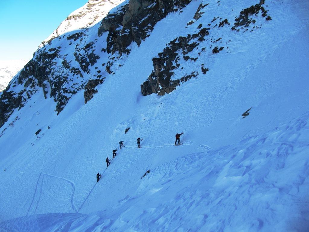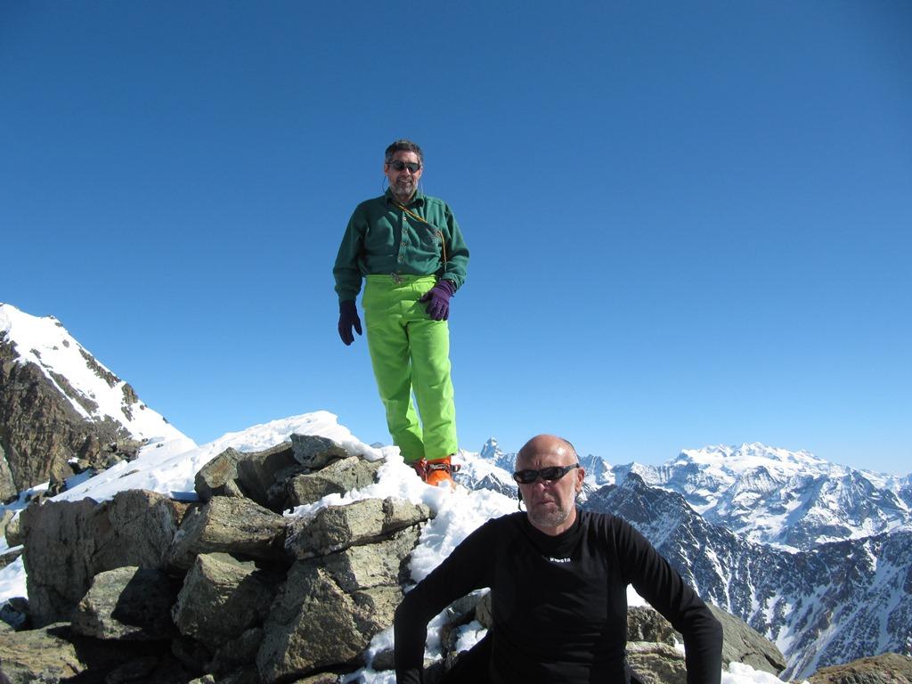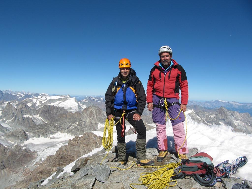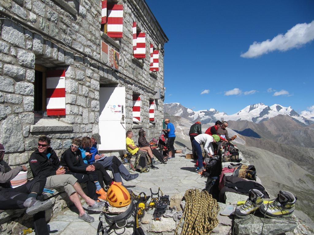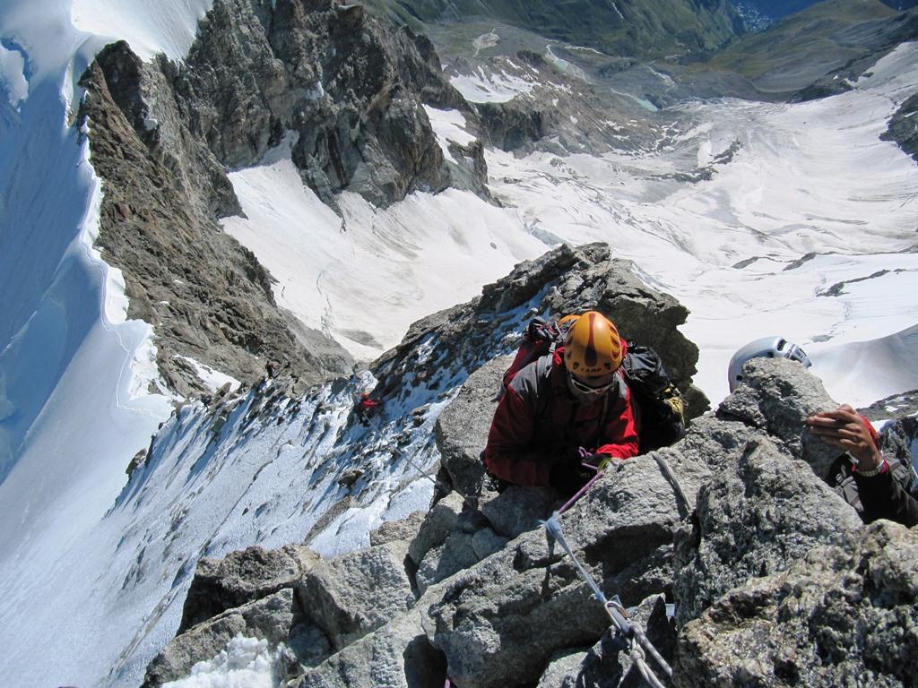 | smarchio | momenti di relax al rifugio prima della gita | smarchio | sotto la Wellenkuppe - momnetodi pausa | smarchio | i canaponi del Gran Gendarme aiutano notevolmente; il passaggio tecnicamente più difficile (senza i canaponi) è nell'ultimo tratto (si lavora molto di braccia) | smarchio | vetta spettacolare e affollata - come si dice di solito (ARRIVATI A CASA): stanchi ma felici | smarchio | spettacolare il Cervino che ci segue per tutta la salita.... | smarchio | Dalla vetta inizia la discesa della cresta che è fattibile tutta con circa 6 doppie - non abbiamo avuto dubbi nell'attuare questa scelta.... | smarchio | calando lungo la cresta superiore... | smarchio | ... con un'occhio alla fine delle doppie quando toccheremo nuovamente la cresta nevosa | smarchio | la vista sul gendarme e la wellenkuppe che ci stanno aspettando è magnifica.... | smarchio | uno sguardo indietro prima di affrontare il Gran Gendarme a ritroso (passagino impegnativo per accedere alla roccia dalla cresta nevosa) | smarchio | il Gran Gendarme lo abbiamo disceso con 3 calate | smarchio | uno sguardo a Zermatt (che raggiungeremo alle 22:00) dalla Wellenkuppe | smarchio | E' FATTA! il rifugio è a una manciata di minuti.... | smarchio | rifugio (nascosto da una nuvoletta) e parte delpercorso di salita dalla vetta | smarchio | bivio COLLE VALMIANA - MONTE MATTO (inizio degli ometti)