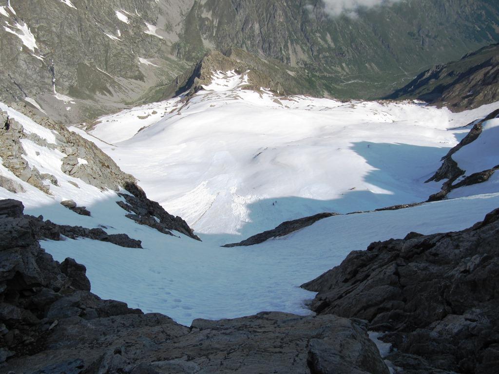 | smarchio | Guardando il vallone di salita si scorge sullo sfondo il Pic du Lac Blanc | smarchio | La croce di vetta | smarchio | Dalla vetta la vista verso il massiccio degli Ecrins | smarchio | Dalla vetta la vista verso Briancon | smarchio | Il canalone come appare da sotto il Col de Buffere | smarchio | momenti di relax al rif. Aosta | smarchio | salendo la cresta verso il Gran Gendarme | smarchio | uno sguardo al percorso appena effettuato (alle spalle di Claudio) dalla fine del ghiacciaio superiore. Ci attende l'ultima arrampicata | smarchio | finalmente in vetta!! sono le 10:30 | smarchio | Il Cervino, il Gruppo del Rosa, i 4000 svizzeri.... | smarchio | Scendendo facciamo i tiri fin dalla cresta di vetta | smarchio | alle 11:00 sorridiamo ancora..... | smarchio | aggirando il Gran Gendarme in discesa | smarchio | alcuni passaggi spettacolari | smarchio | fine delle difficoltà tecniche - si noti il ghiacciaio con la traccia che si perde nel "nero"