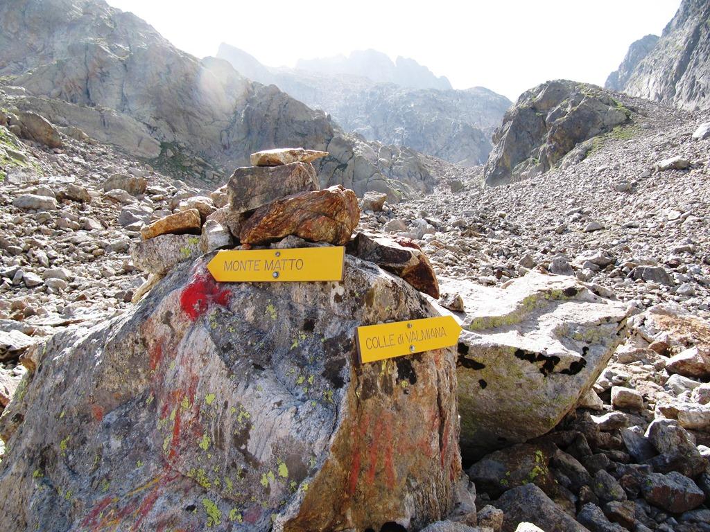 | smarchio | bivio COLLE VALMIANA - MONTE MATTO (inizio degli ometti) | smarchio | rifugio (nascosto da una nuvoletta) e parte delpercorso di salita dalla vetta