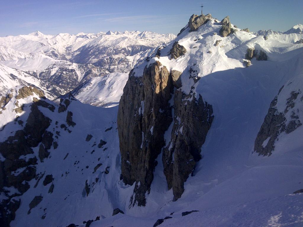 | smarchio | Il canalone come appare da sotto il Col de Buffere | smarchio | Dalla vetta la vista verso Briancon | smarchio | Dalla vetta la vista verso il massiccio degli Ecrins | smarchio | La croce di vetta | smarchio | Guardando il vallone di salita si scorge sullo sfondo il Pic du Lac Blanc