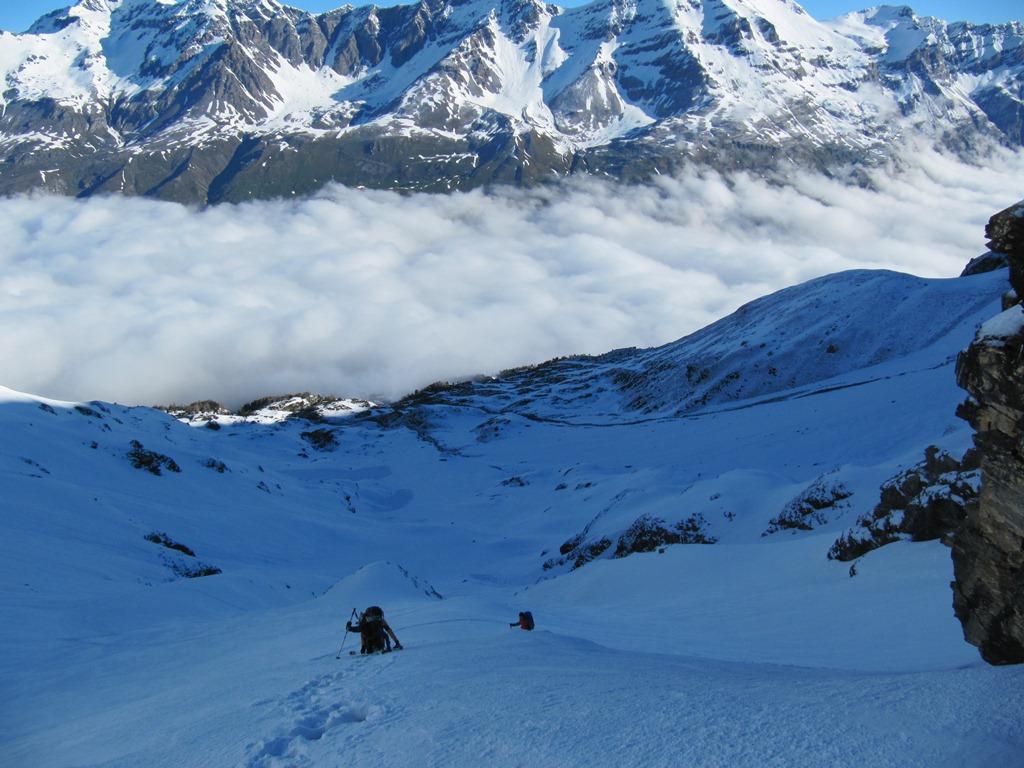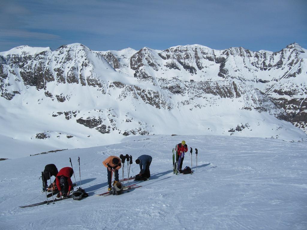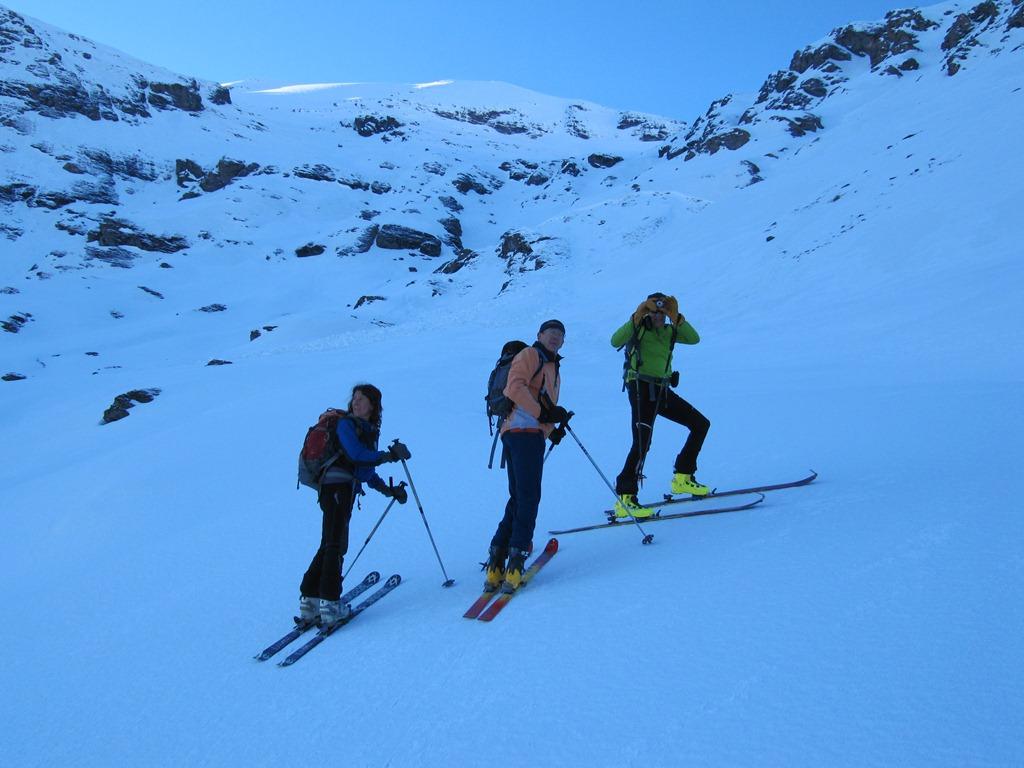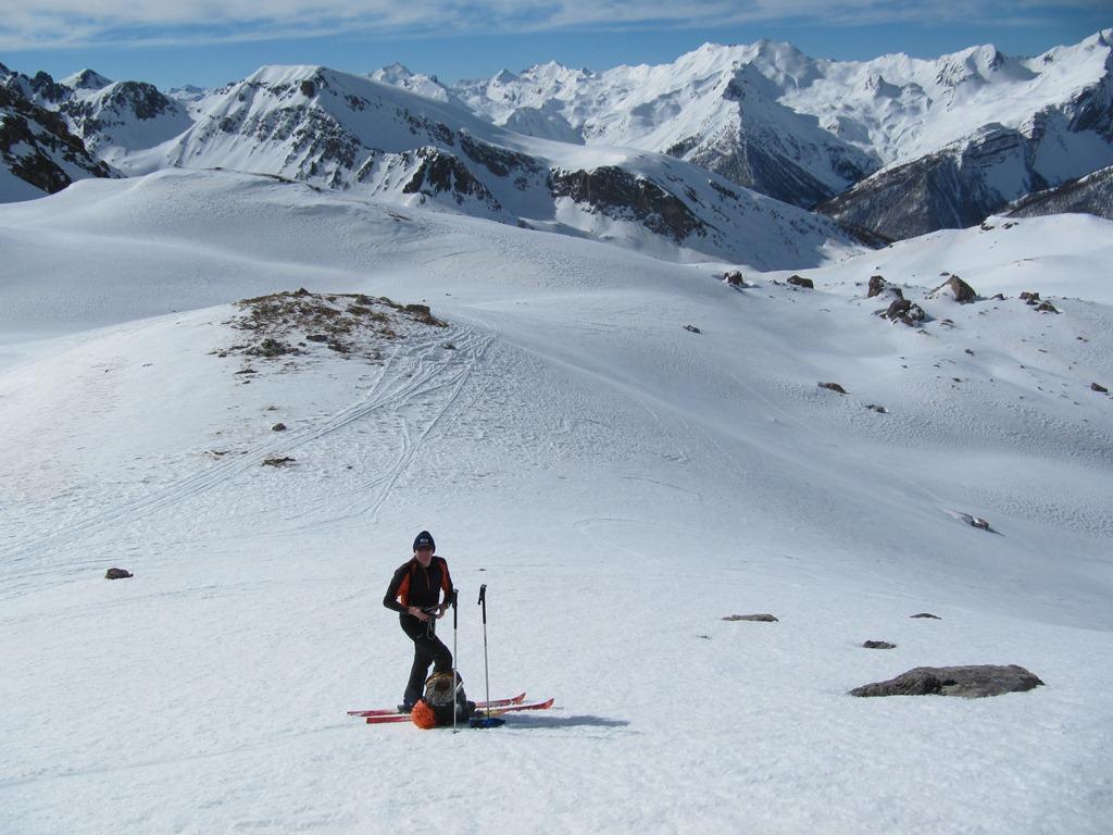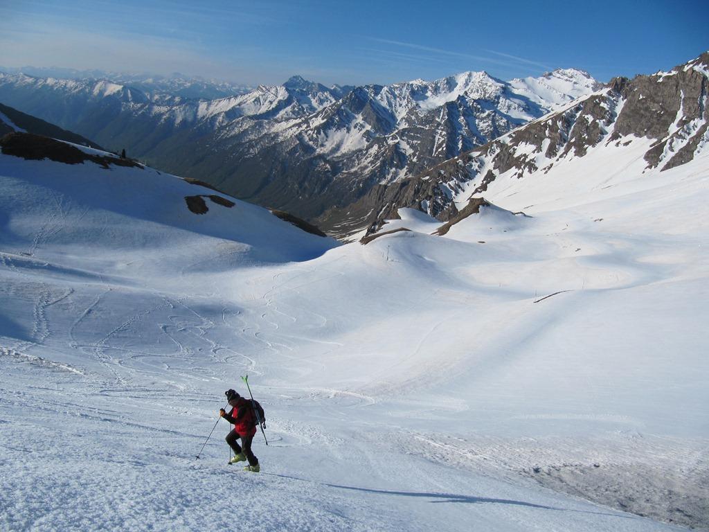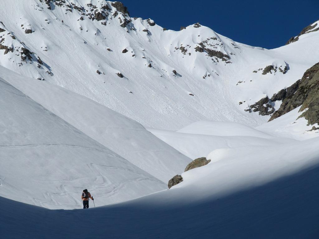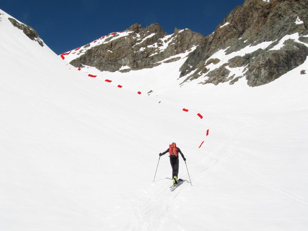 | smarchio | da q. 2700, imboccando il ripidi pendii del vallone Clapouse, veduta sull'alto Vallone del Celse Niere | smarchio | ... e del tratto appena percorso | smarchio | quasi al termine del primo tratto ripido del Vallone Clapouse | smarchio | Verso quota 2600. Fra poco svolteremo a destra per affrontare altri pendii sostenuti ed esposti a SE | smarchio | La neve è già cotta dal sole, ma terrà bene anche più tardi mentre scenderemo | smarchio | siamo quasi a q. 3000 m e guardiamo il percorso appena effettuato | smarchio | in vista della vetta. Il tratto ripido è quello proprio sotto di essa | smarchio | finalmente in vetta - sono le 12:00 | smarchio | e ci godiamo tutti il piacere della cima | smarchio | anche se dobbiamo poi ripartire.... inizia la discesa | smarchio | uno sguardo al percorso di discesa | smarchio | ed uno sguardo indietro al Vallone di Clapouse appena disceso. Ci aspettano ora i ripidi pendii che ci porteranno nel Vallone del Celse Niere | smarchio | ... che affrontiamo godendoci il firn...