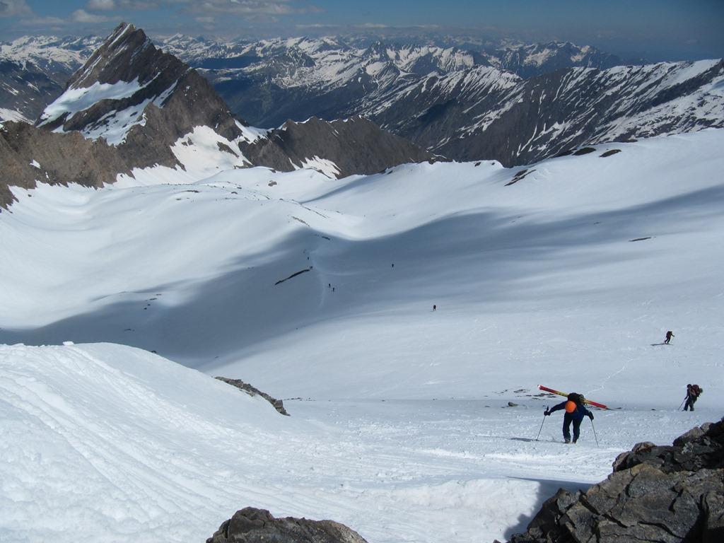 | smarchio | spettacolo al mattino | smarchio | in vista del canalone che porta sul ghiacciaio superiore | smarchio | da cui usciamo percorrendo gli ultimi 30 m a piedi | smarchio | all'uscita del canale ci accoglie il SOLE | smarchio | ... e si intravedono i pendii superiori | smarchio | ... panorama dalla vetta.... | smarchio | NO COMMENT | smarchio | inutile descrivere le sensazioni che si provano a sciare su 4 dita di farina su fondo duro....