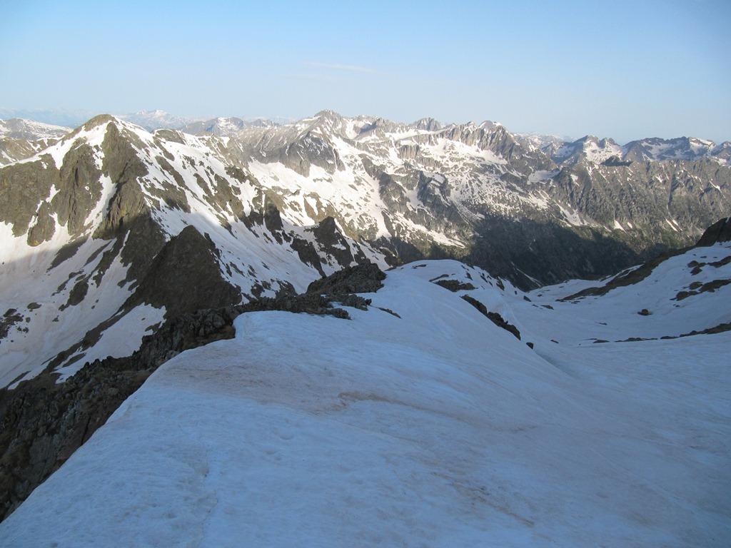 | smarchio | panorama dalla vetta 2 | smarchio | panorama dalla vetta 3 | smarchio | panorama dalla vetta 4 | smarchio | la discesa .... inenarrabile..... | smarchio | in action... ecchissefermapiù? | smarchio | compreso il traverso innevato... | smarchio | ... e le ultime lingue di neve che ci portano fino al Lago Arpon | smarchio | da q. 2700, imboccando il ripidi pendii del vallone Clapouse, veduta sull'alto Vallone del Celse Niere | smarchio | ... e del tratto appena percorso | smarchio | quasi al termine del primo tratto ripido del Vallone Clapouse | smarchio | Verso quota 2600. Fra poco svolteremo a destra per affrontare altri pendii sostenuti ed esposti a SE | smarchio | La neve è già cotta dal sole, ma terrà bene anche più tardi mentre scenderemo | smarchio | siamo quasi a q. 3000 m e guardiamo il percorso appena effettuato | smarchio | in vista della vetta. Il tratto ripido è quello proprio sotto di essa | smarchio | finalmente in vetta - sono le 12:00