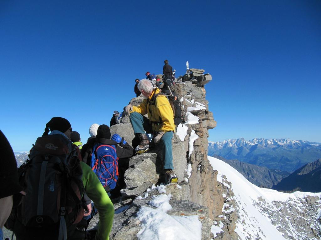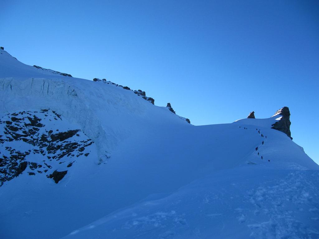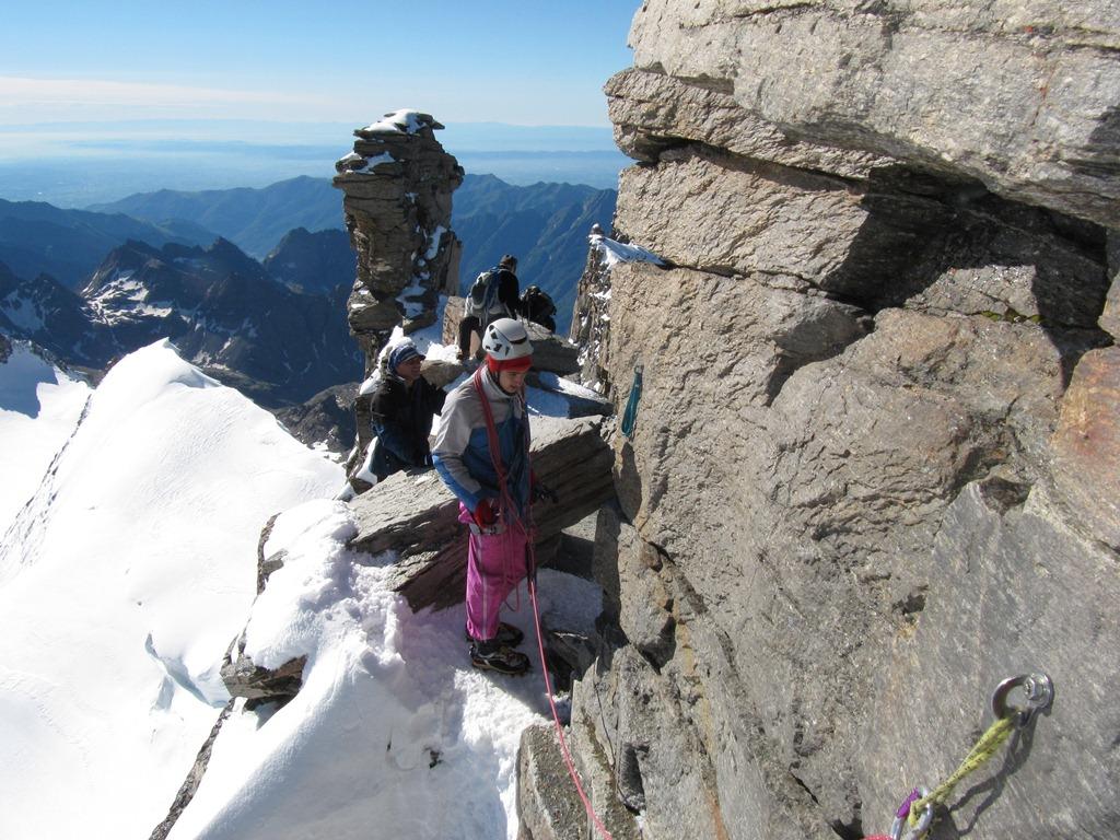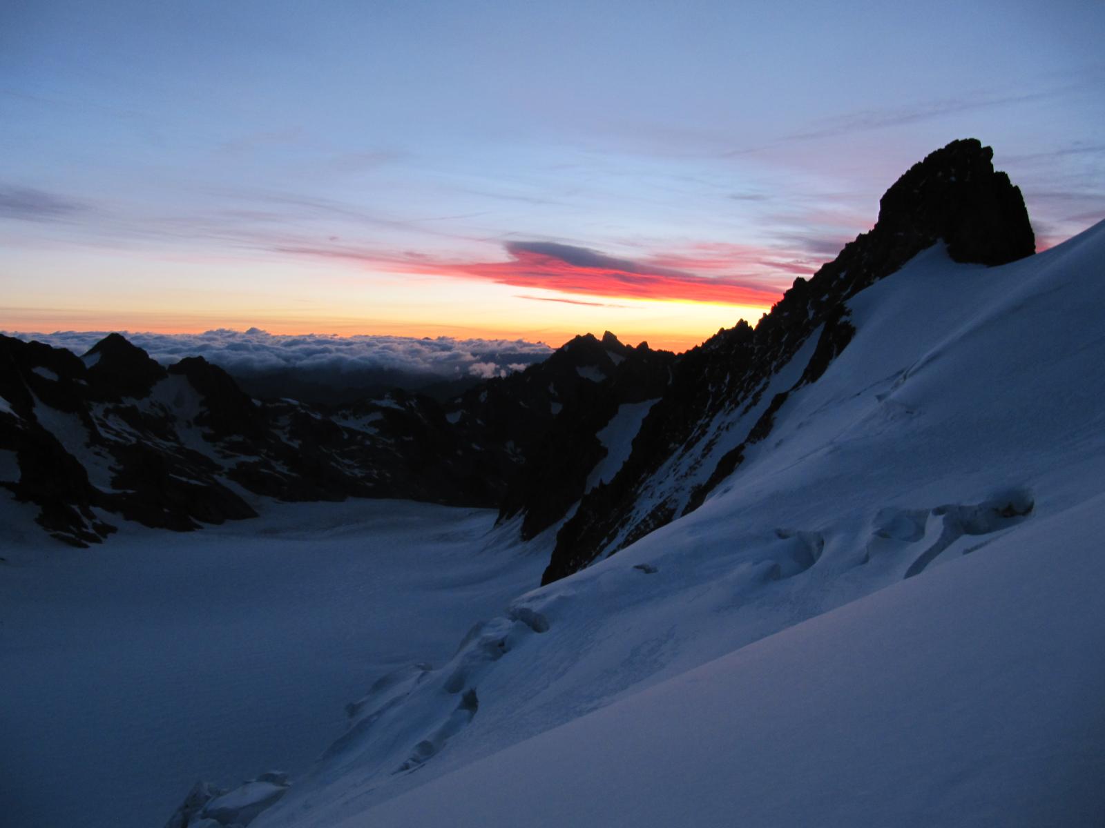 | smarchio | e ci immortaliamo dalla parte francese | smarchio | ritorniamo indietro fino alla casermetta e puntiamo al Colle Luisas | smarchio | quindi ci dirigiamo all'attacco | smarchio | brevi arrampicate (proteggibili con numerosi spit nei punti chiave) e giungiamo i vetta | smarchio | dove facciamo le foto di rito | smarchio | per il ritorno decidiamo di percorrere il Colle Sellerino e il Colle delle Traversette ( il Buco di Viso lo abbiamo gia' attraversato 2 volte) | smarchio | Il primo tratto del Glacier Blanc è molto tormentato | smarchio | la parte più alta è invece agevole e panoramica. Siamo quasi n vista del rifugio. | smarchio | Arrivati al rifugio si studia il percorso | smarchio | l'itinerario di salita è ottimamente tracciato..... | smarchio | Il mattino dopo.... | smarchio | ... ci godiamo l'alba quando siamo vicini alla meta | smarchio | ... la cordata 2 (Marco, Sandro e Sergio) fotografata dalla cordata 1 (Annalisa & Marco) | smarchio | che raggiungiamo alle 08:00 | smarchio | e, come si può vedere, il vento non da tregua