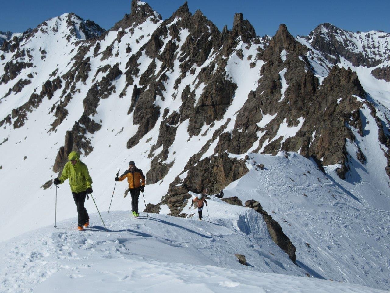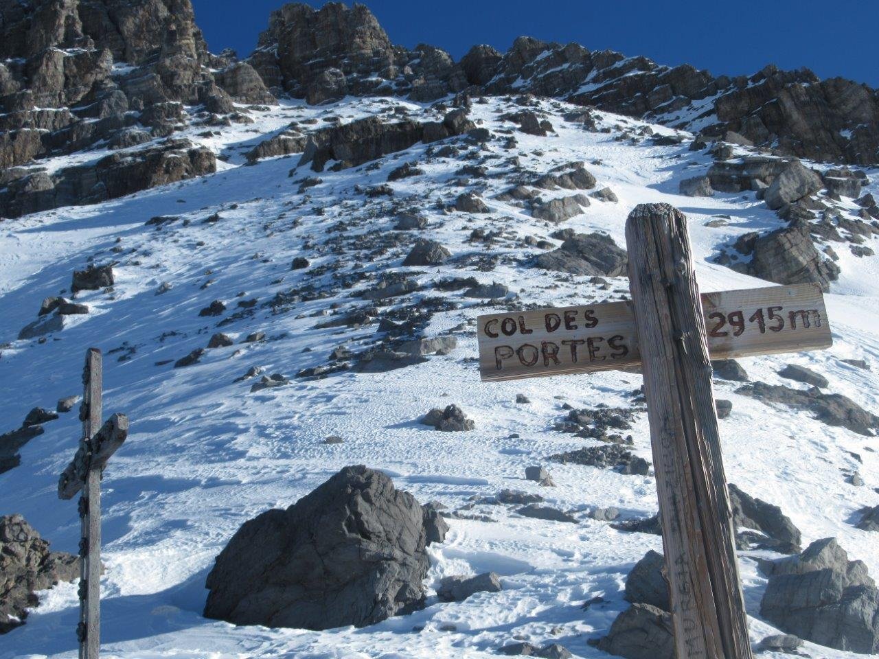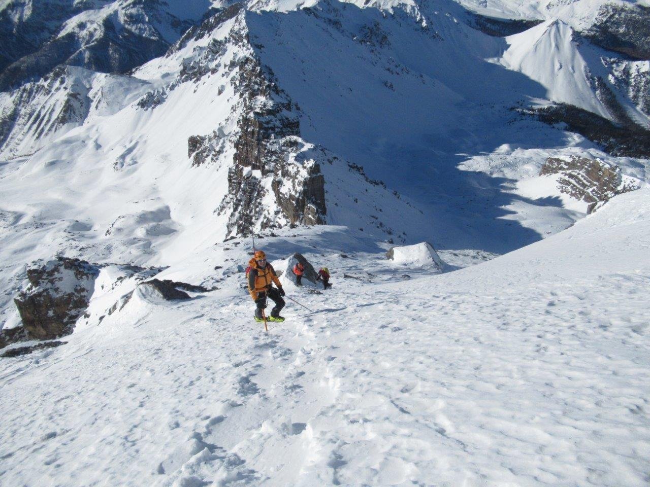 | smarchio | In vista del Col de Portes | smarchio | Dal Colle, vista della dorsale di salita verso il canale NW | smarchio | Pausa al Colle (sole e poco vento, ma tanto freddo) | smarchio | Circa 3050m - in vista del canale NW | smarchio | Sempre da 3050m sguardo verso valle (percorso appena salito) | smarchio | il TRAVERSO sul versante SE | smarchio | e il canale finale verso la vetta | smarchio | con uno sguardo verso valle (le rocce circa 50 m sotto nascondono il TRAVERSO) | smarchio | La compagnia in VETTA (foto scattata da un alpinista francese giunto in vetta che ringraziamo) | smarchio | la discesa nella parte alta