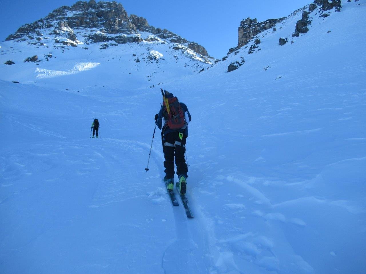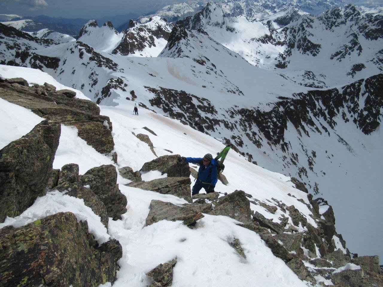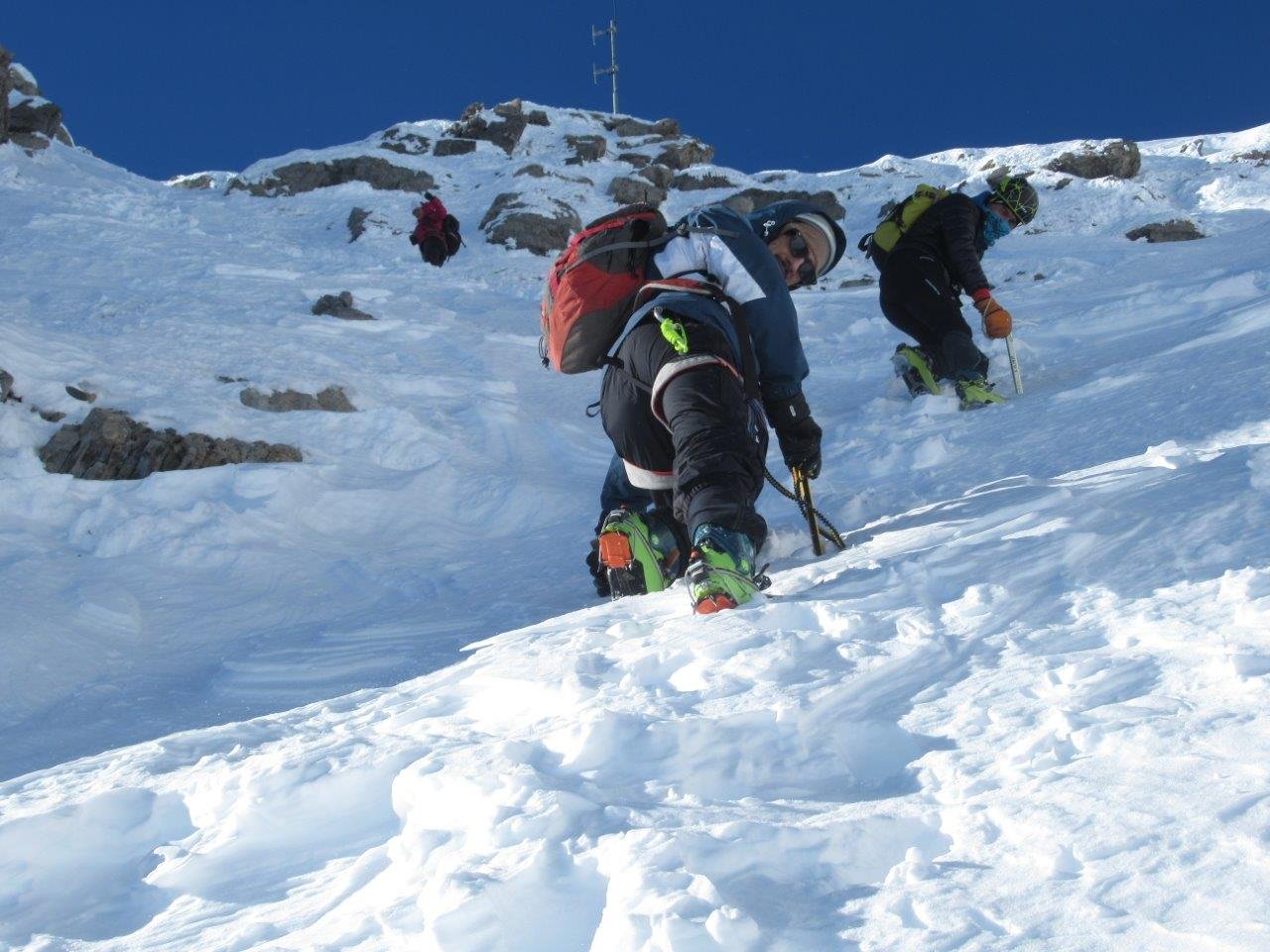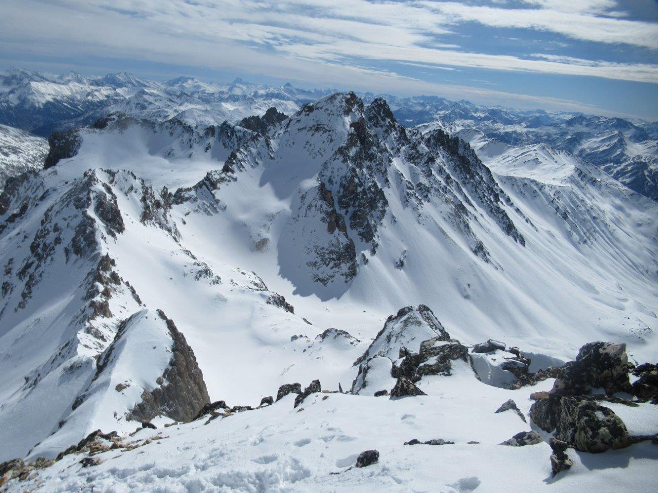 | smarchio | In vista del Col de Portes | smarchio | Dal Colle, vista della dorsale di salita verso il canale NW | smarchio | Pausa al Colle (sole e poco vento, ma tanto freddo) | smarchio | Circa 3050m - in vista del canale NW | smarchio | Sempre da 3050m sguardo verso valle (percorso appena salito) | smarchio | il TRAVERSO sul versante SE | smarchio | e il canale finale verso la vetta | smarchio | con uno sguardo verso valle (le rocce circa 50 m sotto nascondono il TRAVERSO) | smarchio | La compagnia in VETTA (foto scattata da un alpinista francese giunto in vetta che ringraziamo) | smarchio | la discesa nella parte alta