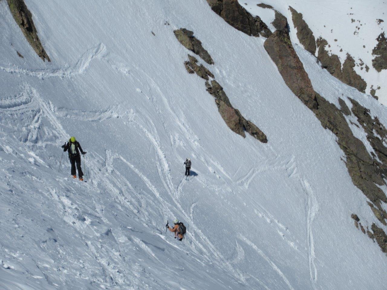 | smarchio | risalendo con le pelli | smarchio | arrivato alla breche | smarchio | salendo al bivacco, uno sguardo indietro | smarchio | preparo la doppia da 60m | smarchio | con il supporto di Enrico in prossimità del bivacco | smarchio | mentre aspetto i soci incontrati lungo la via immortalo l'affollamento di quelli che devono ancora scendere dalla breche | smarchio | i pendii di discesa | smarchio | Il canalino 40° nel tratto terminale è l'ultima fatica, il resto è relax | smarchio | uno sguardo indietro dove si tolgono gli sci per rimontare i 150 m che portano alla stradina per Chamonix