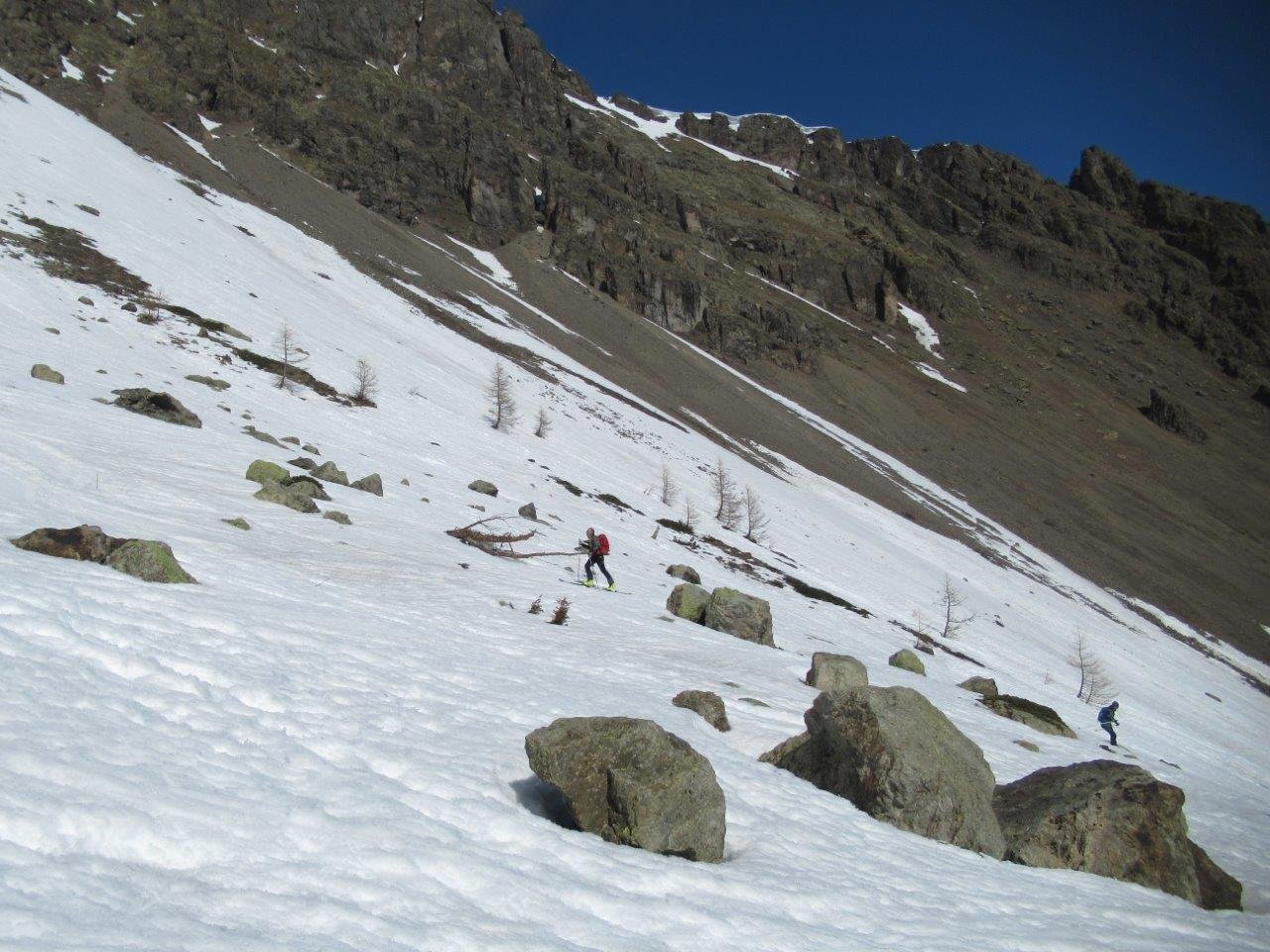 | smarchio | vista della prima parte della salita da Grange Arpon | smarchio | al traverso di q. 2300 (fatto con i ramponi in salita e con gli sci in discesa) | smarchio | uno sguardo sulla parte alta della salita | smarchio | valanga! si vedono le tracce che escono ... | smarchio | valanga! si vedono le tracce che entrano... | smarchio | sciata splendida.... | smarchio | traverso di q. 2300 in discesa con gli sci | smarchio | raggiungiamo l'ultima lingua di neve che ci permette di scendere fino a 1900 m ca. | smarchio | da vicino l'arrivo con gli sci