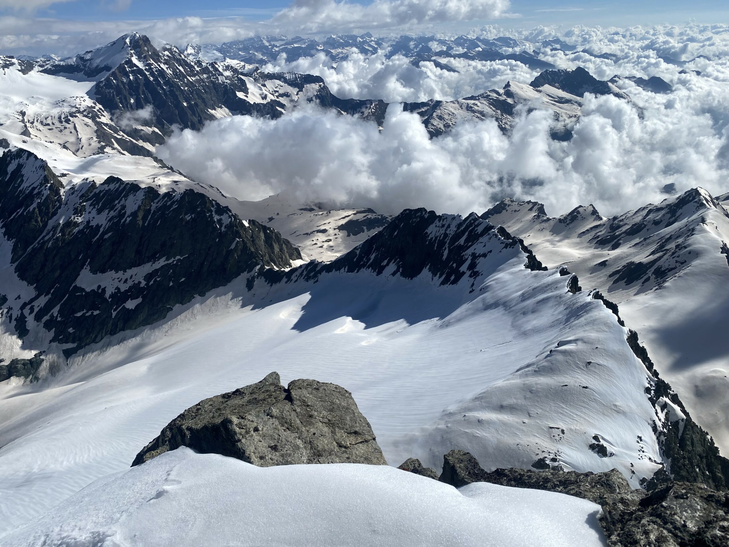 | smarchio | Vista dei Breithorn dalla Rothornhuette | smarchio | Prima parte del percorso dal rifugio | smarchio | subito sotto la Wellenkuppe | smarchio | Appena superata la Wellekuppe si scorge la cresta finale. La cornice sarà percorsa sulla sua base rocciosa | smarchio | Sulla cresta del Gran Gendarme con alle spalle la Wellenkuppe | smarchio | in VETTA | smarchio | Prime calate | smarchio | durante il ritorno "sotto" la cornice | smarchio | lungo il sentiero di rientro a Zermatt, uno sguardo indietro...