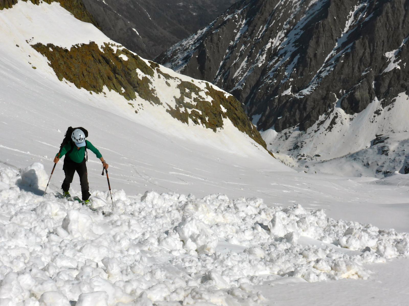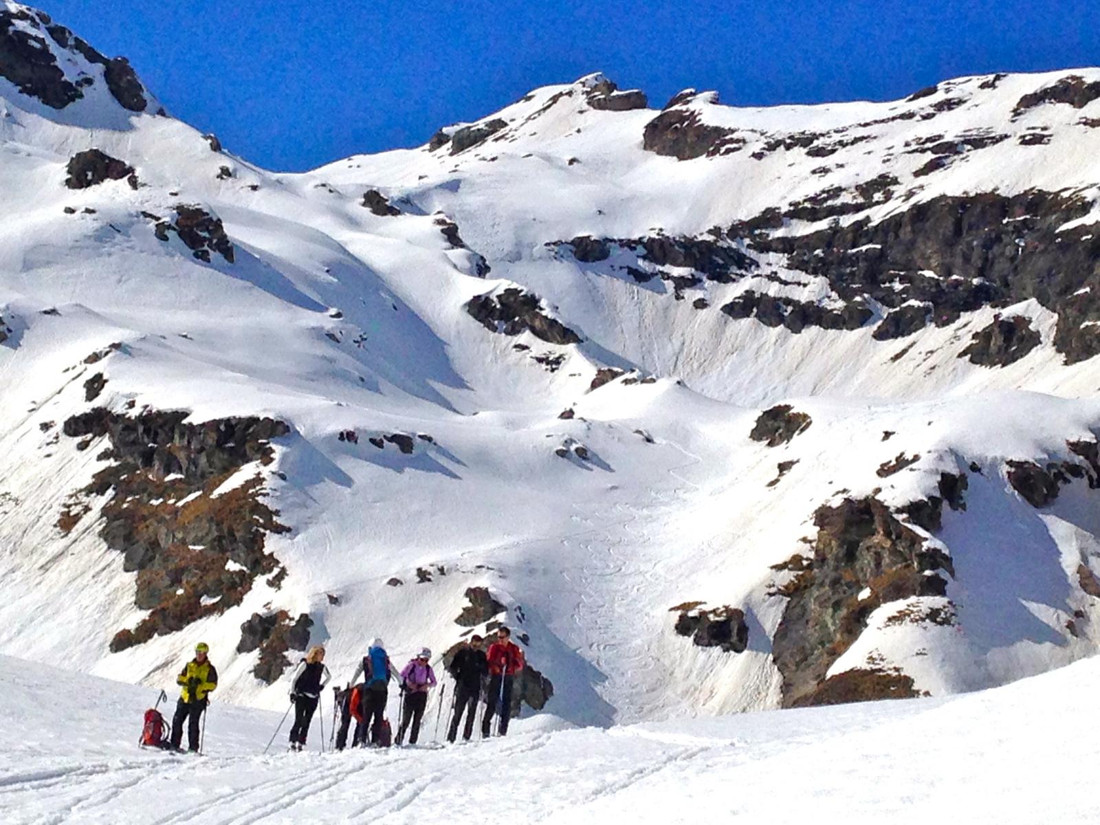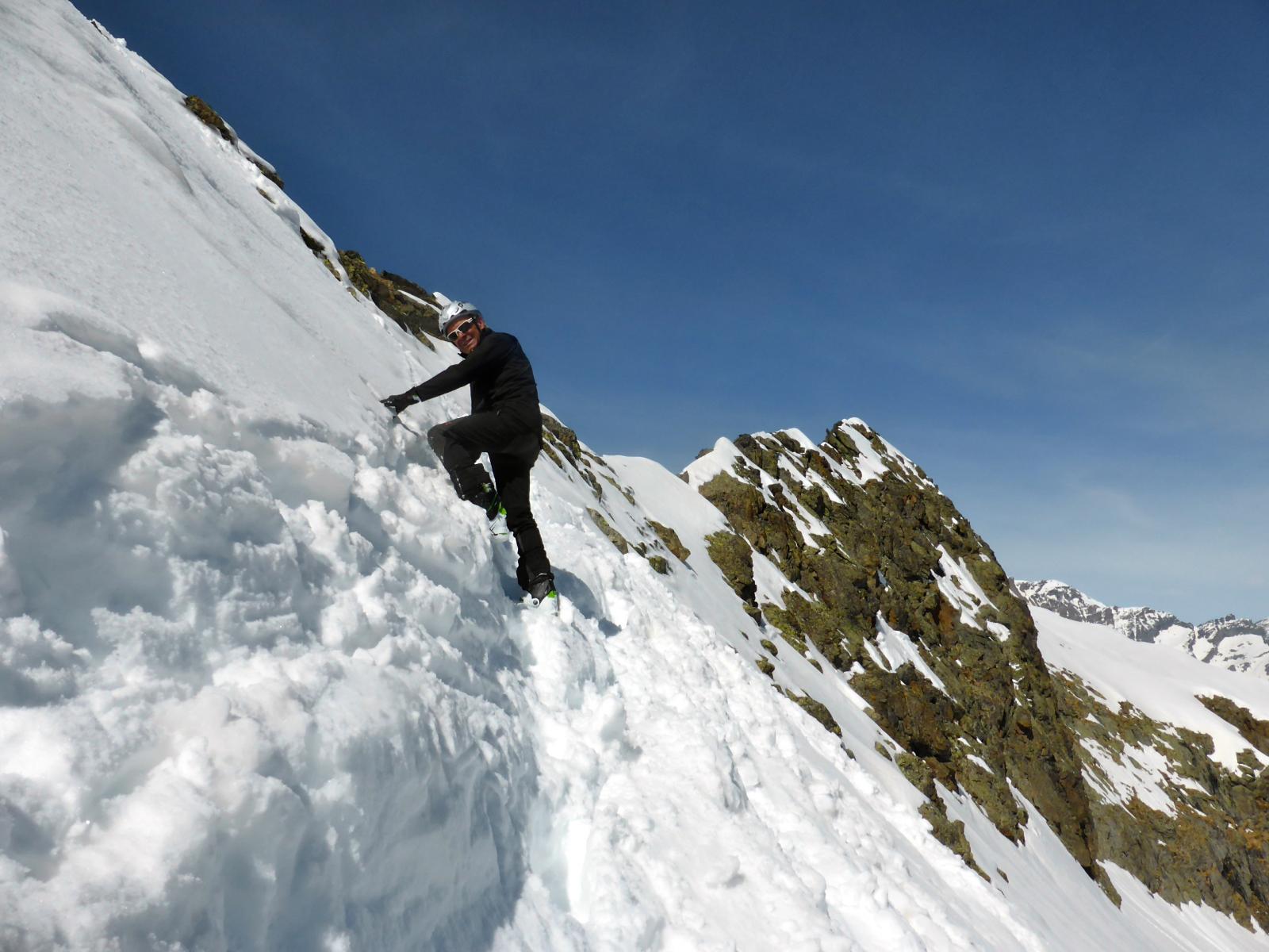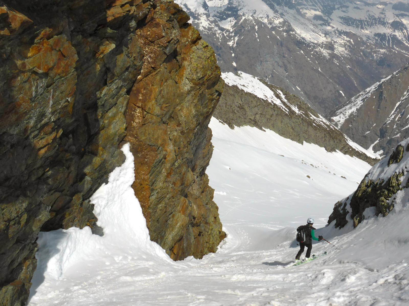 scesi dalla punta sulla spalla di sinistra , altri canale centrale , 500 -600 mt favolosi su fondo duro , pendio ampio dove si concatenano…