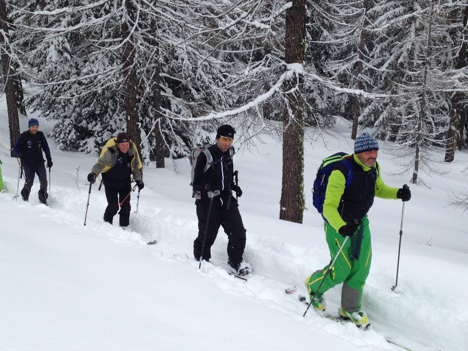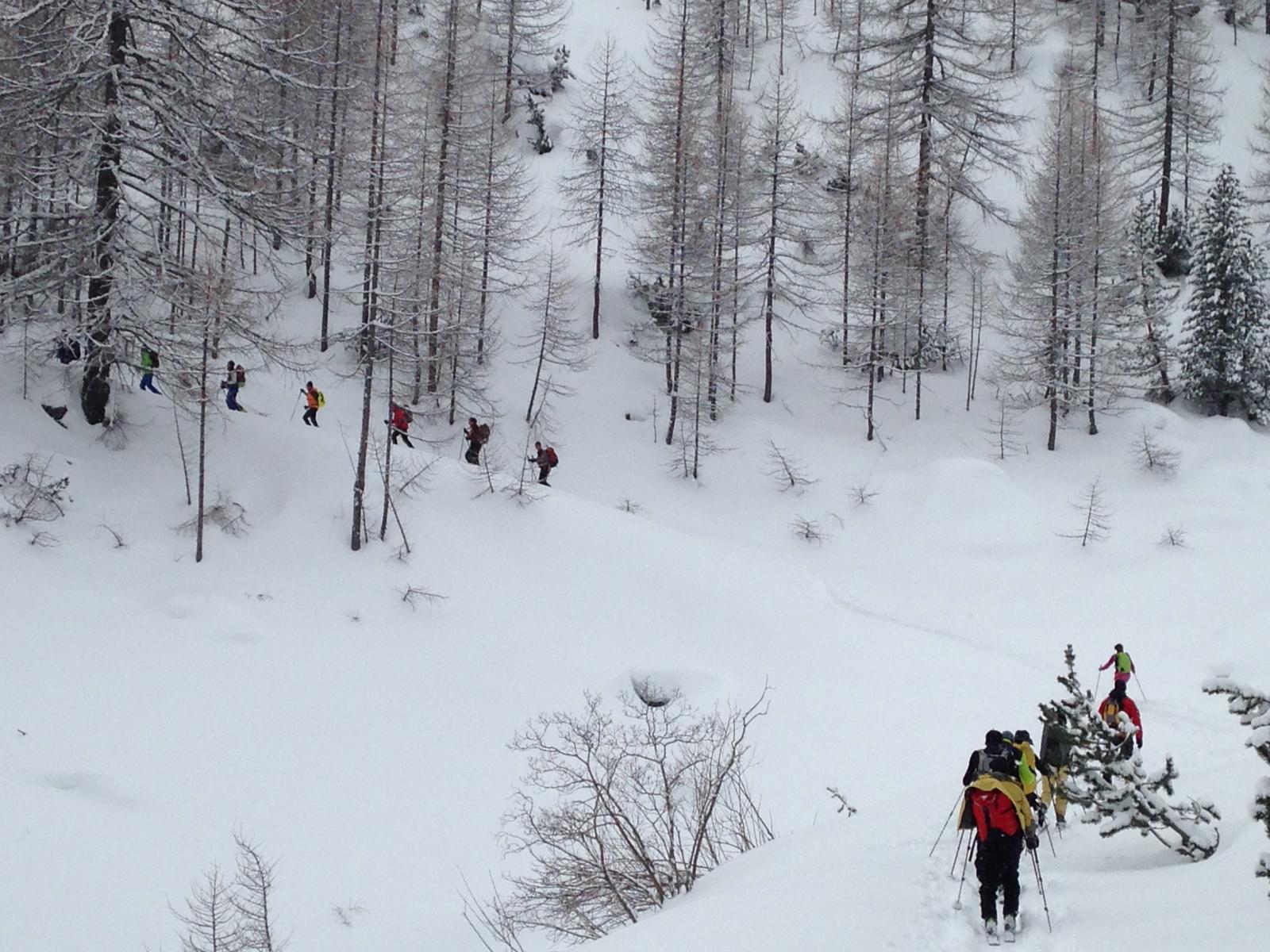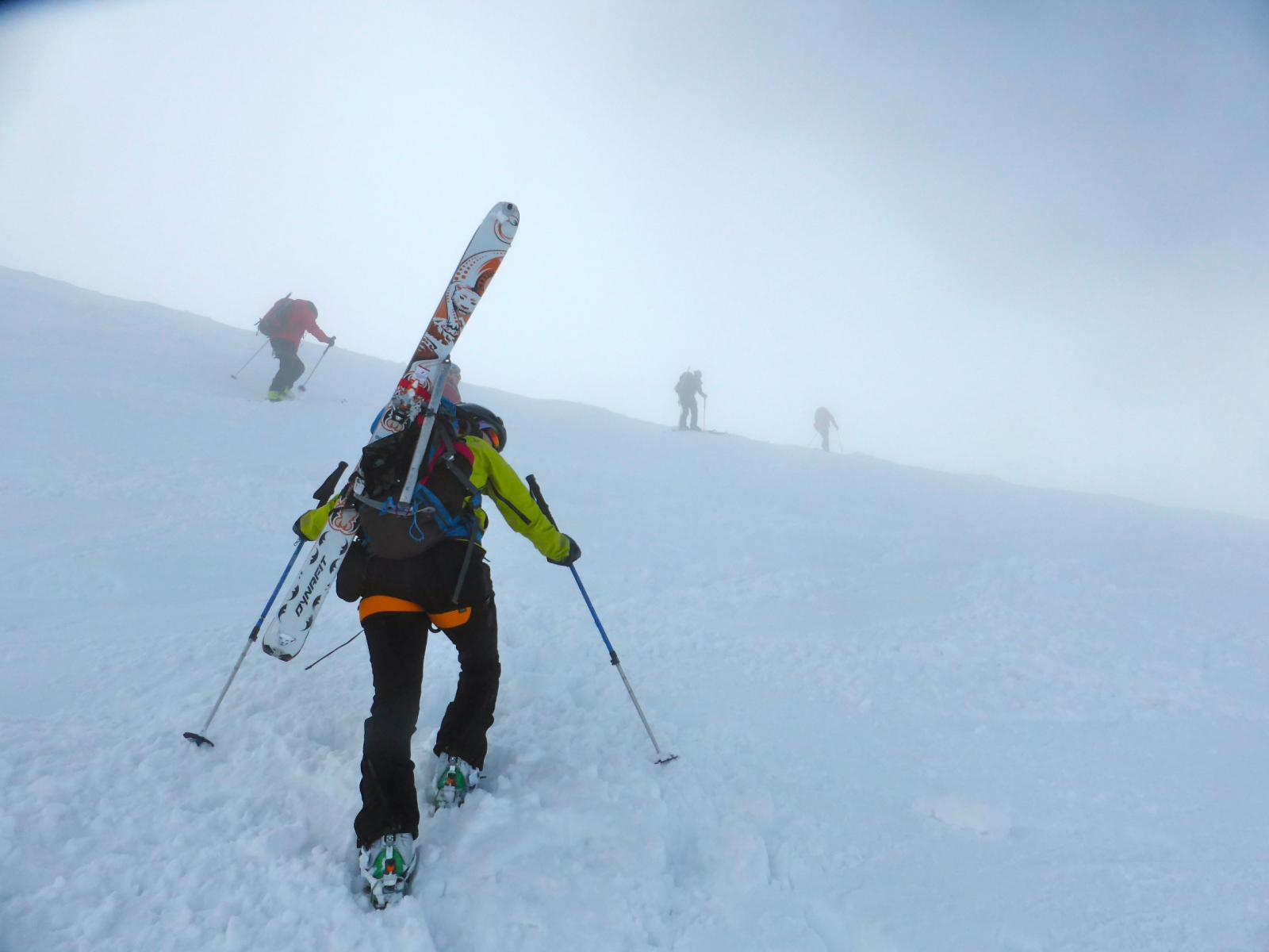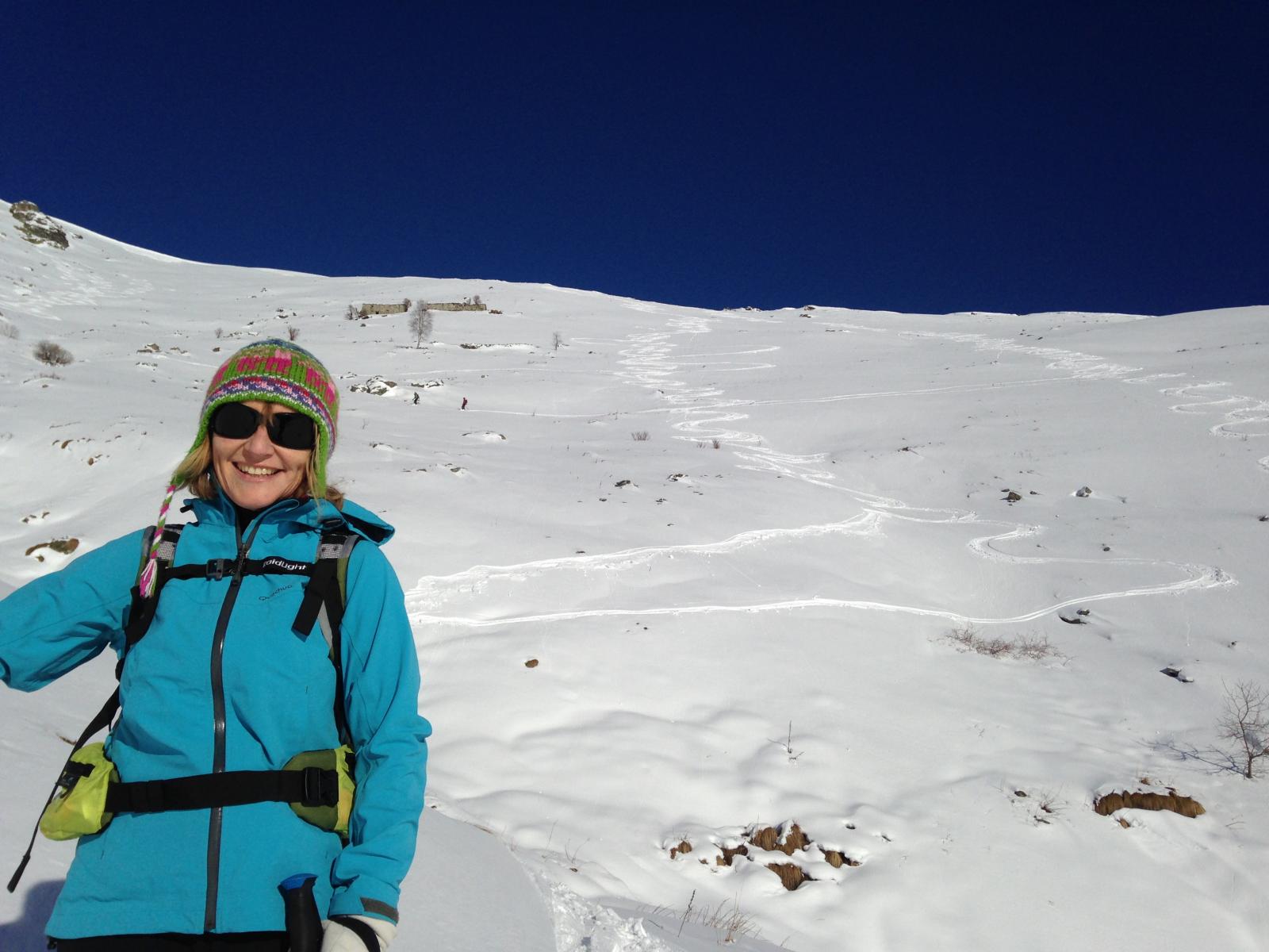 scesi dalla punta sulla spalla di sinistra , altri canale centrale , 500 -600 mt favolosi su fondo duro , pendio ampio dove si concatenano…