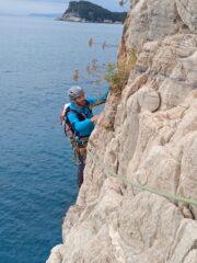 Falesia stratosferica. Ottima scelta per iniziare la settimana in terra Sarda. Calcare di ottima qualità per nulla usurato. Chiodatura molto buona anche se a volte…