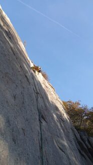 Via molto carina su roccia stratosferica. Chiodatura buona anche se a volte distanziata ma eventualmente per chi ne avesse bisogno si può integrare facilmente…