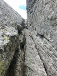 Una via veramente bella anche se di soli tre tiri. La roccia è ottima e la chiodatura buona ma sicuramente non ascellare. Sconsigliata a…