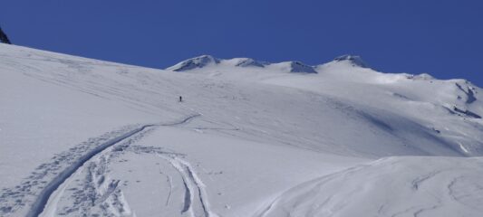 | stedomanda | foto della parete dal rifugio | stedomanda | La nostra linea di attacco | stedomanda | In avvicinamento | stedomanda | tracciano il ghiacciaio superiore | stedomanda | Passaggio sulla terminale abbastanza delicato | stedomanda | In parete | stedomanda | Sosta prima del tiro per sbucare fuori dalla parete | stedomanda | Il tiro su neve inconsistente | stedomanda | Inizio della discesa tutta da tracciare | stedomanda | Uno sguardo dietro