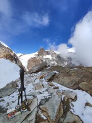 Bella gita in un ambiente un po’ più selvaggio rispetto alle vie classiche e frequentate del Rosa; divertente la placca col passaggio più impegnativo.