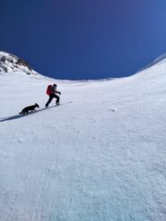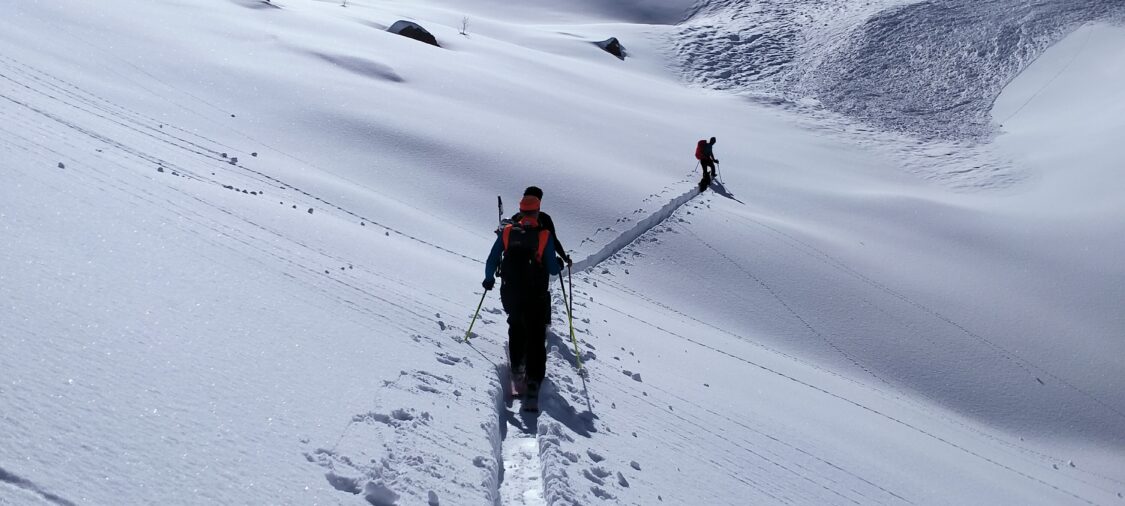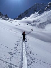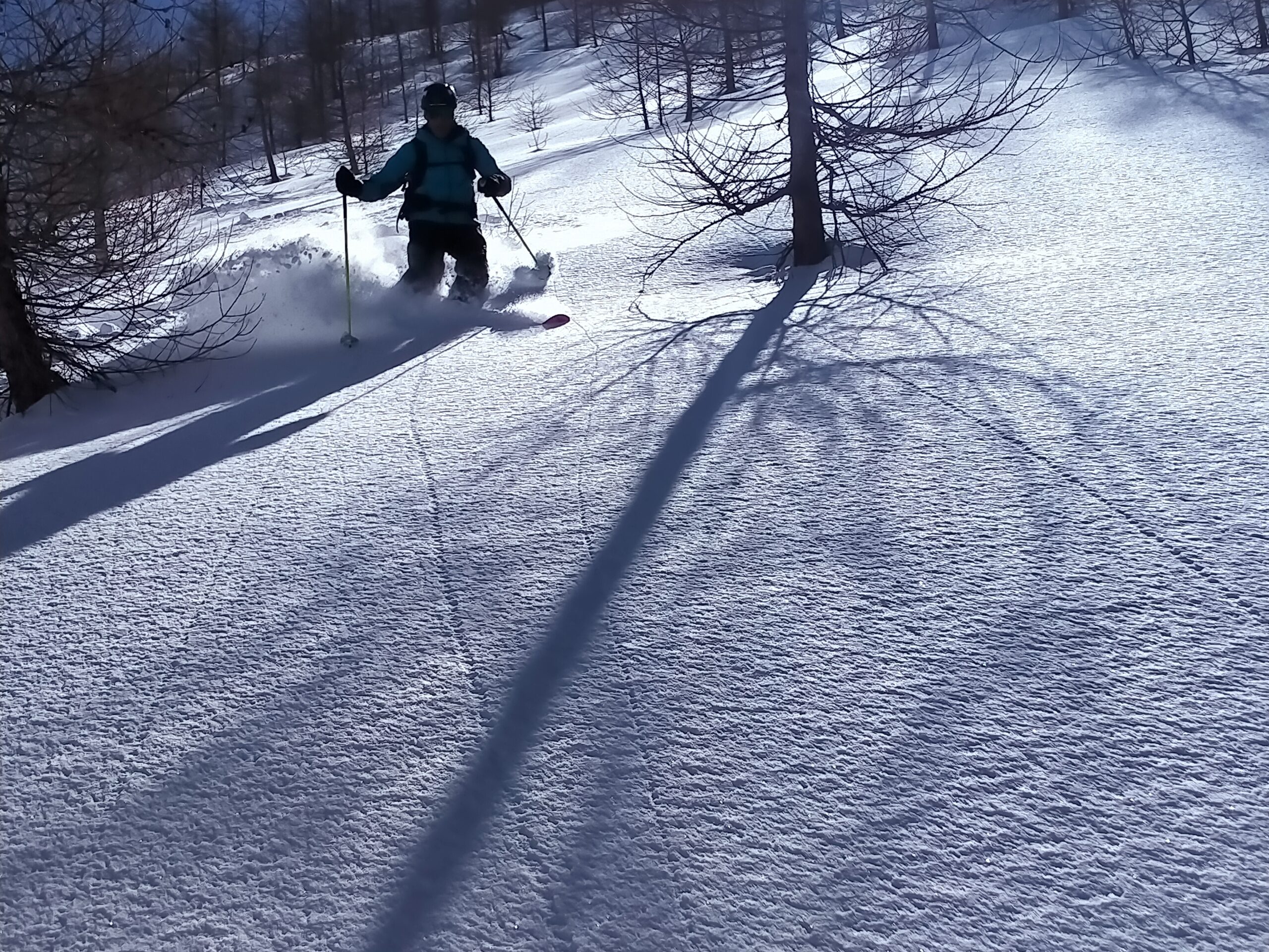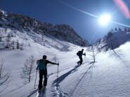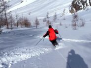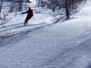 Risalita la stradina su neve farinosa pesante approfittando di una traccia di ciaspola che dopo 500 metri si è interrotta, siamo usciti dalla boschina battendo…