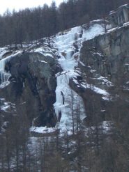 Oggi bella nevicata; la cascata è soggetta a slavine ma l'unico punto rischioso è l'uscita del primo tiro, per il resto basta tenersi fuori tiro.