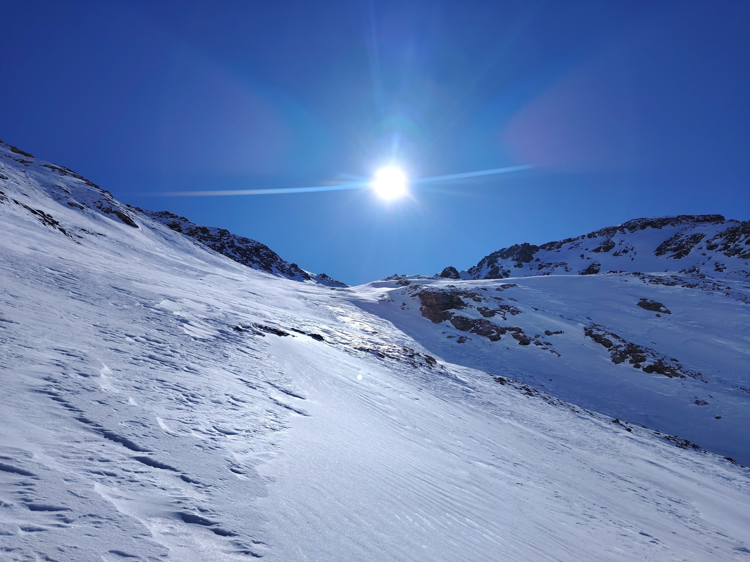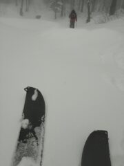 Ottimo strato di neve fresca di 10-20 cm su neve trasformata. Visto neve pallattolare.