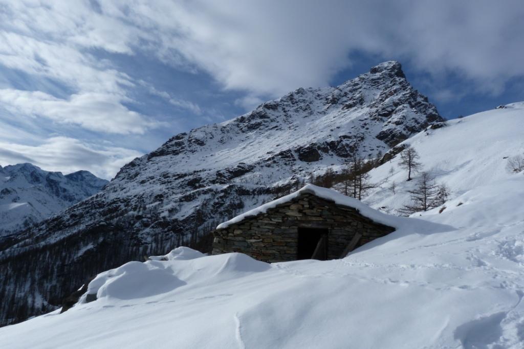 Scendendo nel vallone della Sagna si tolgono gli sci per qualche minuto. Scesi alle ore 11 su neve molto bella che aveva mollato il giusto,…