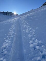 Ottima traccia Nella parte alta della gita sul versante a sud tende a formarsi zoccolo