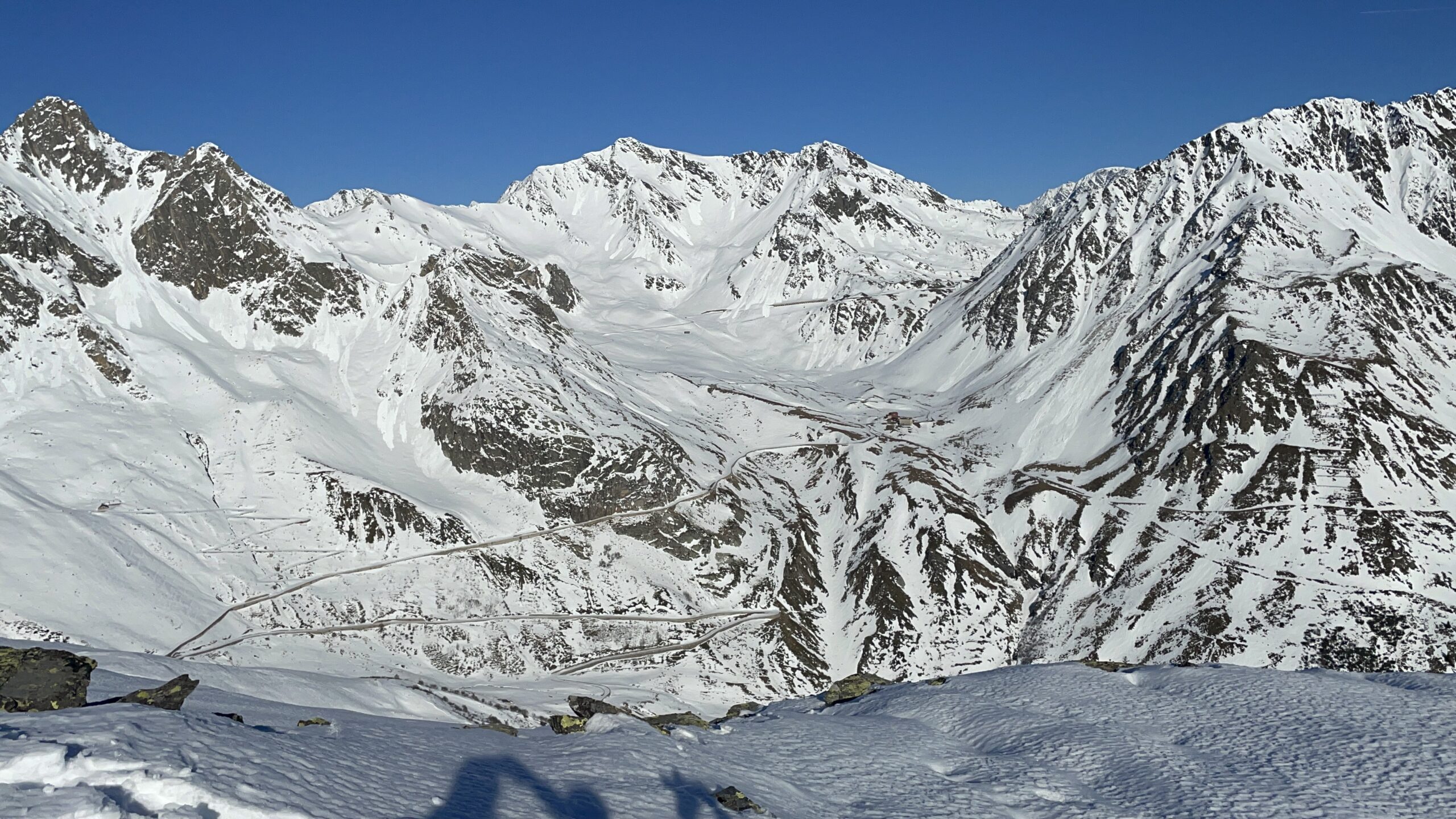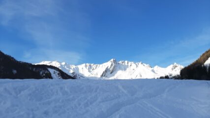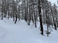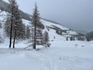 Risaliamo dal parcheggio piste e ci spostiamo verso la testa di Crevacol passando per pista. Risaliamo solo fino al Colle di Crevacol per neve brutta…
