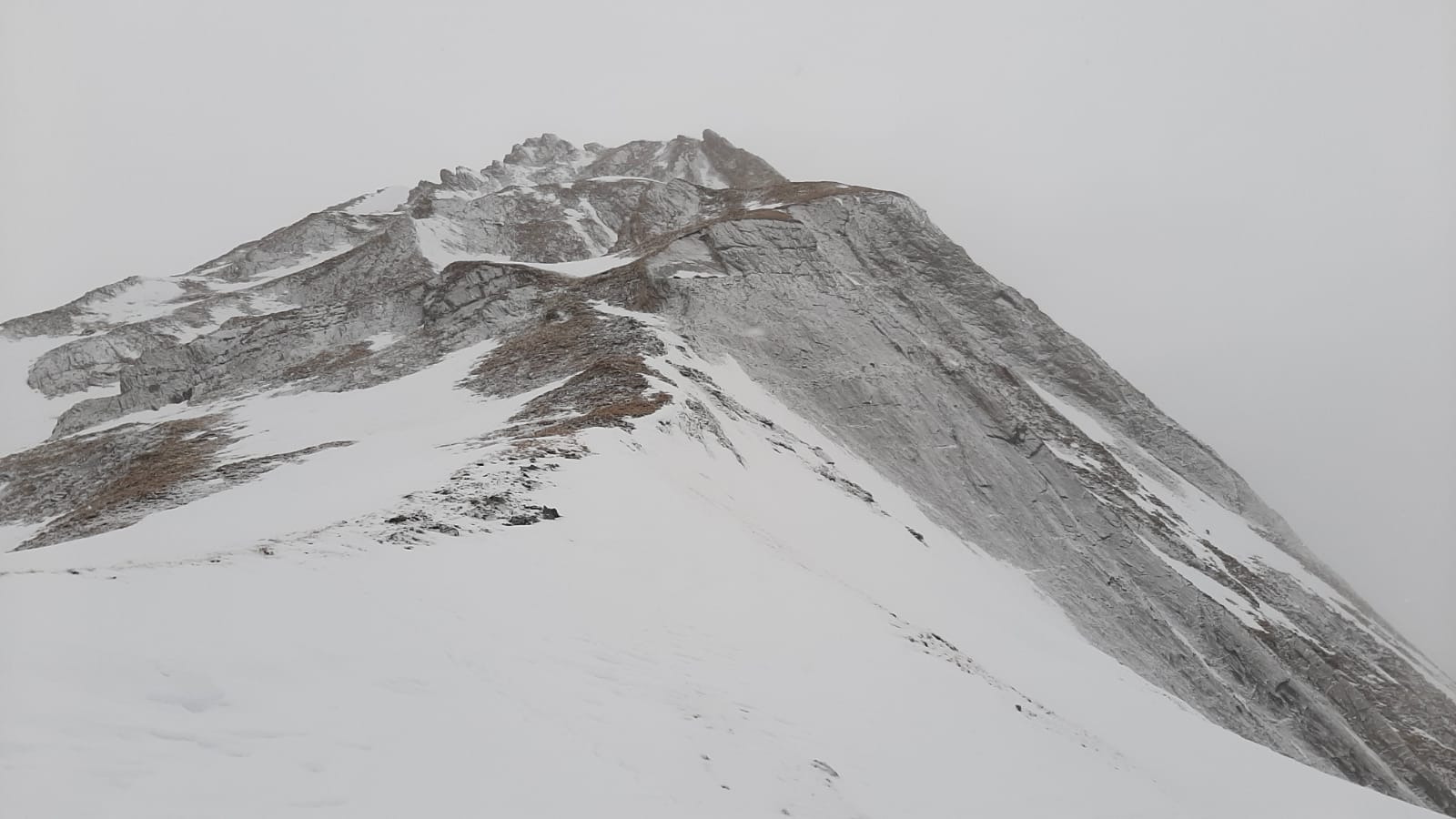 Pioggia in partenza. Traccia battuta ma formazione zoccolo da inizio a fine della nostra salita Neve molto pesante, quasi non sciabile Vento da termine del bosco
