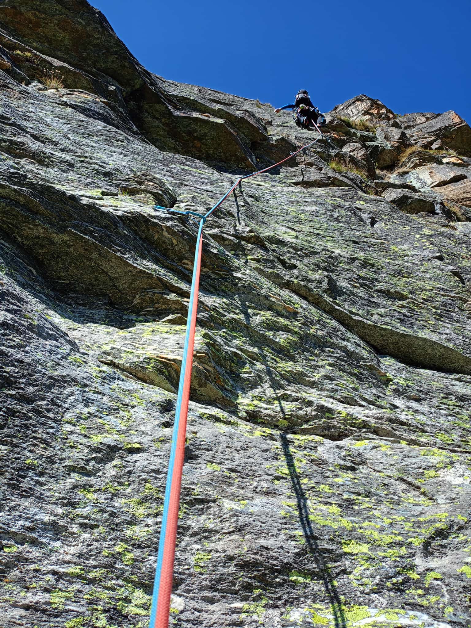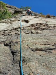 Alla fine ci è piaciuta.....via di stampo alpinistico con attenta valutazione della roccia. Utili 2/3 slunghi per gestire i tiraggi. Conviene spezzare il terzo tiro…