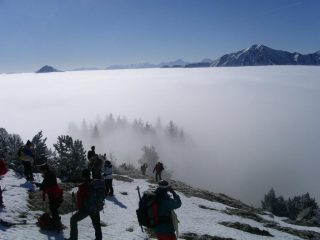 Giornata caratterizzata da forte vento (specie in cresta) ma temperature miti. Tolto le racchette per gli ultimi 50 mt di cresta.