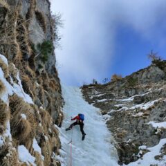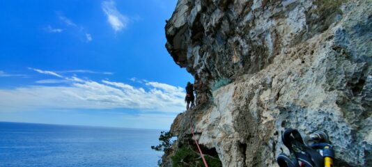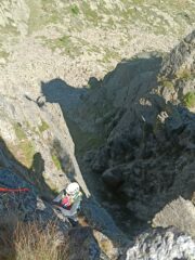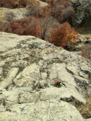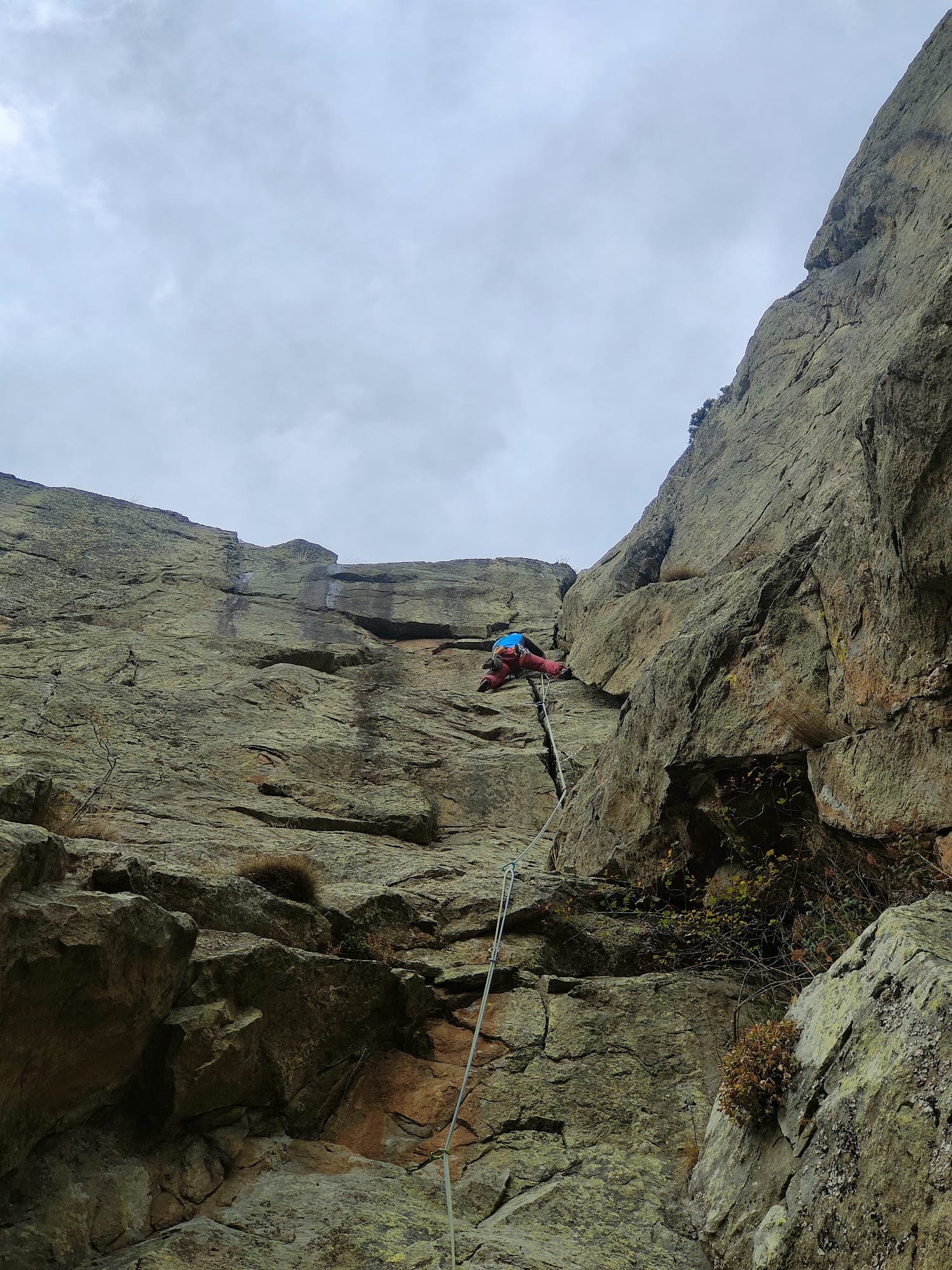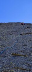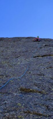 Bella via sul paretone con difficoltà omogenee e spittatura quasi sportiva inusuale per il luogo. Arrampicata varia, prevalentemente placca ma con qualche bel passaggio…