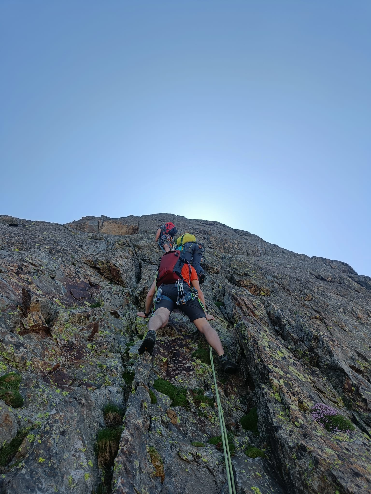 Partiti alle 6 dal Bozano per provare a salire piú all'ombra possibile date le temperature eccezionali degli ultimi giorni. In un'oretta siamo all'attacco Al bordo…