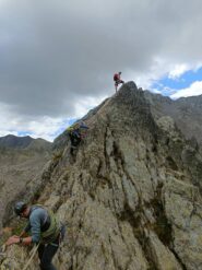 Partiti dal Bozano un pó dopo le 7 e per una volta l'evidente canale di accesso alla cresta é veramente evidente. In vetta alla prima…