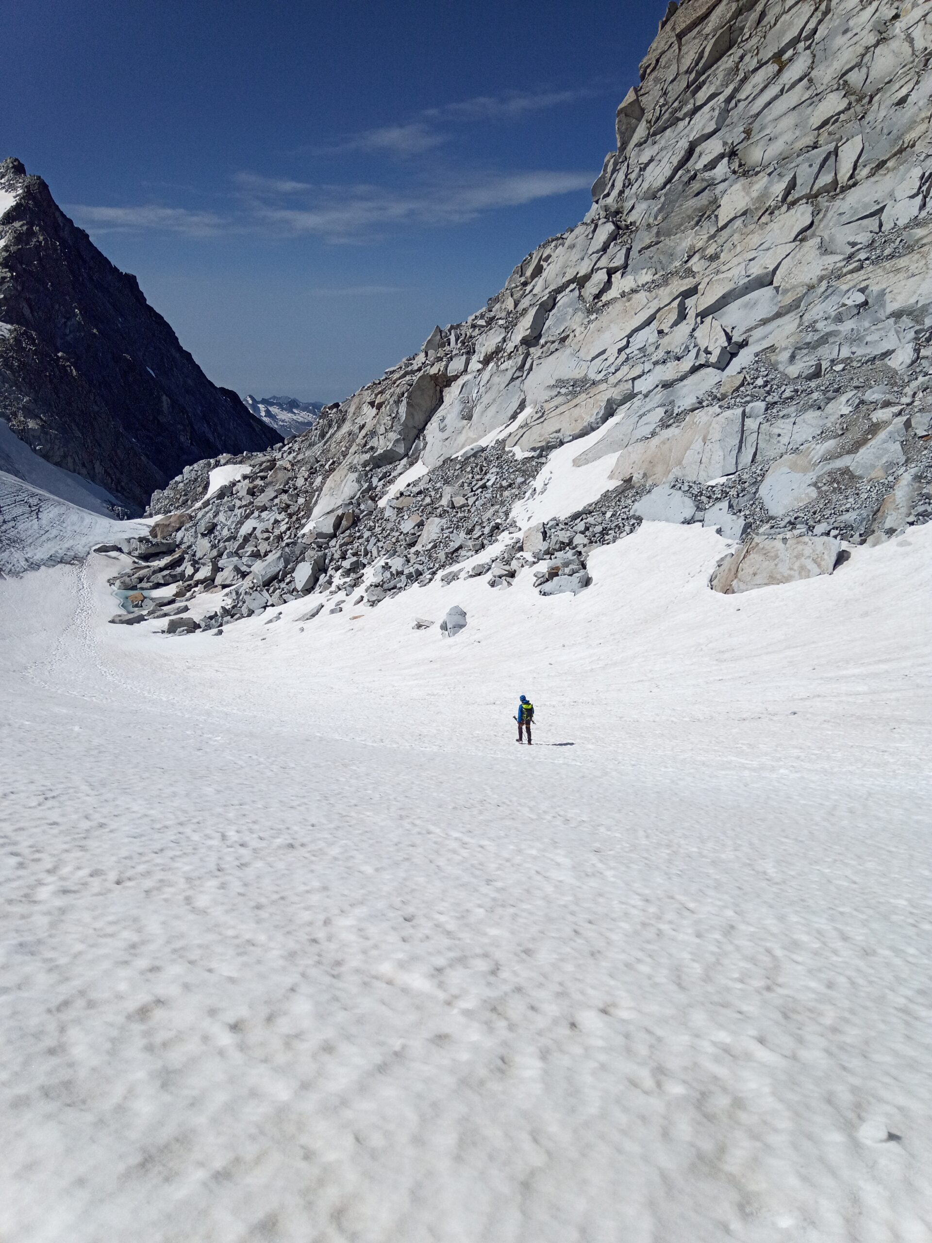Gita lunga e divertente nel tratto di via attrezzata. Partenza presto dal rifugio alle 3.45, ottimo rigelo. Ramponi e picca necessari. Il ghiacciaio è…