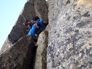 Bella via su roccia nel complesso molto buona. Credo sia una delle rare ripetizioni di questo itinerario. Un solo nut (originale!) trovato, per il resto…
