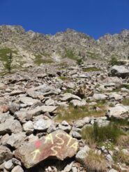 sentiero ottimo fino alla deviazione poi dopo la scritta sul masso puntare il canale con il masso incastrato all'inizio si vedono subito frecce e bolli…