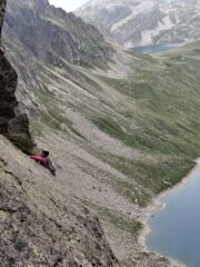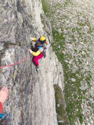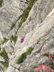 Terminale non facile da superare, soste in ordine, sul secondo tiro si fa qualche metro in conserva prima di arrivare alla sosta. Sui tiri messe…