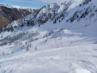 Bella passeggiata dolce fino alla Bassa del Drous, poi si scende verso la valle gesso piegando a sx fino a prendere un canale molto appoggiato…